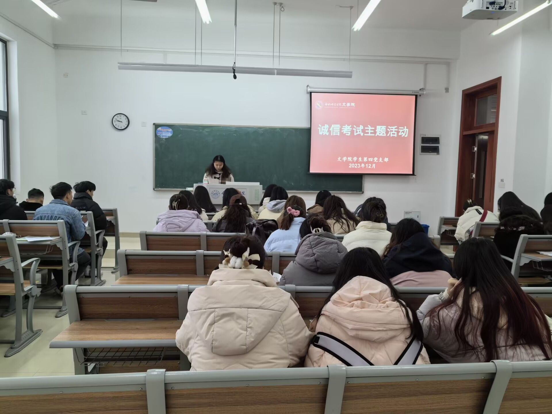 党支部书记带领党员、入党积极分子学习《365英国上市公司官网学生考试违规处理办法》的相关规定,提出自觉遵守考场纪律,坚决杜绝作弊行为的要求,做到认真备考、诚信应考。党员代表宣读诚信考试倡议书,倡议党员要以身作则,带头弘扬诚信正义,做一名合格的大学生党员,并把诚信考试的要求传递给所在班级同学,将诚实守信的理念内化于心,外化于行。