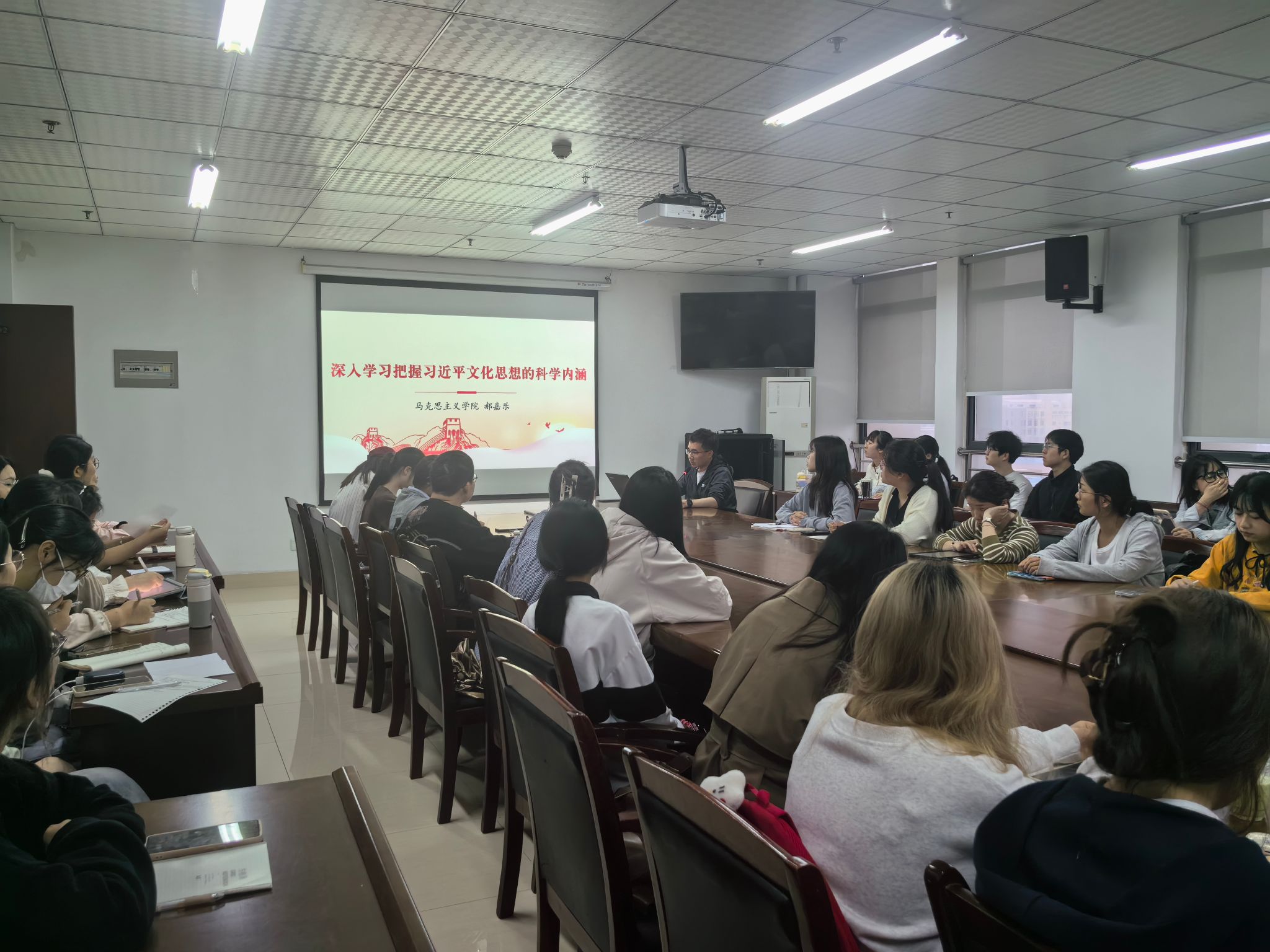 宣讲中,郝嘉乐以“深入学习把握习近平文化思想的科学内涵”为题,围绕“明体达用、体用贯通”,系统阐述了这一思想科学回答的为什么要建设文化强国、建设什么样的文化强国、怎样建设文化强国等基本问题、内容。