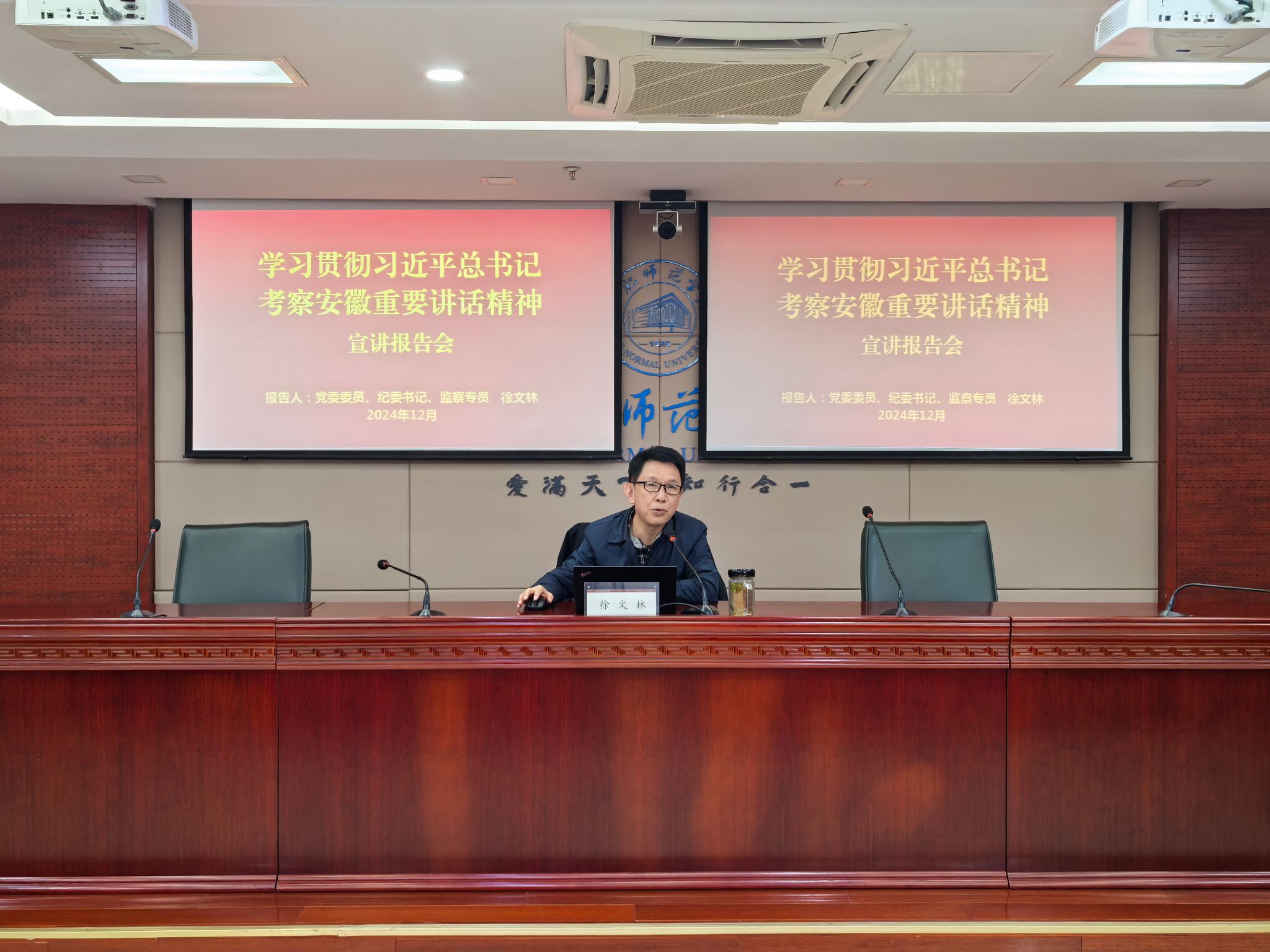 为引导广大师生深入学习宣传贯彻习近平总书记考察安徽重要讲话精神,根据学校统一安排,12月11日,院党委委员、纪委书记、监察专员徐文林为联系单位365英国上市公司官网、外国语学院和生物与食品工程学院党员作习近平总书记考察安徽重要讲话精神专题宣讲。