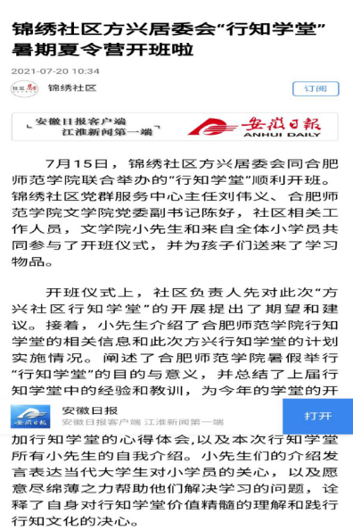 安徽新闻网报道我院方兴居委会党员“行知学堂”