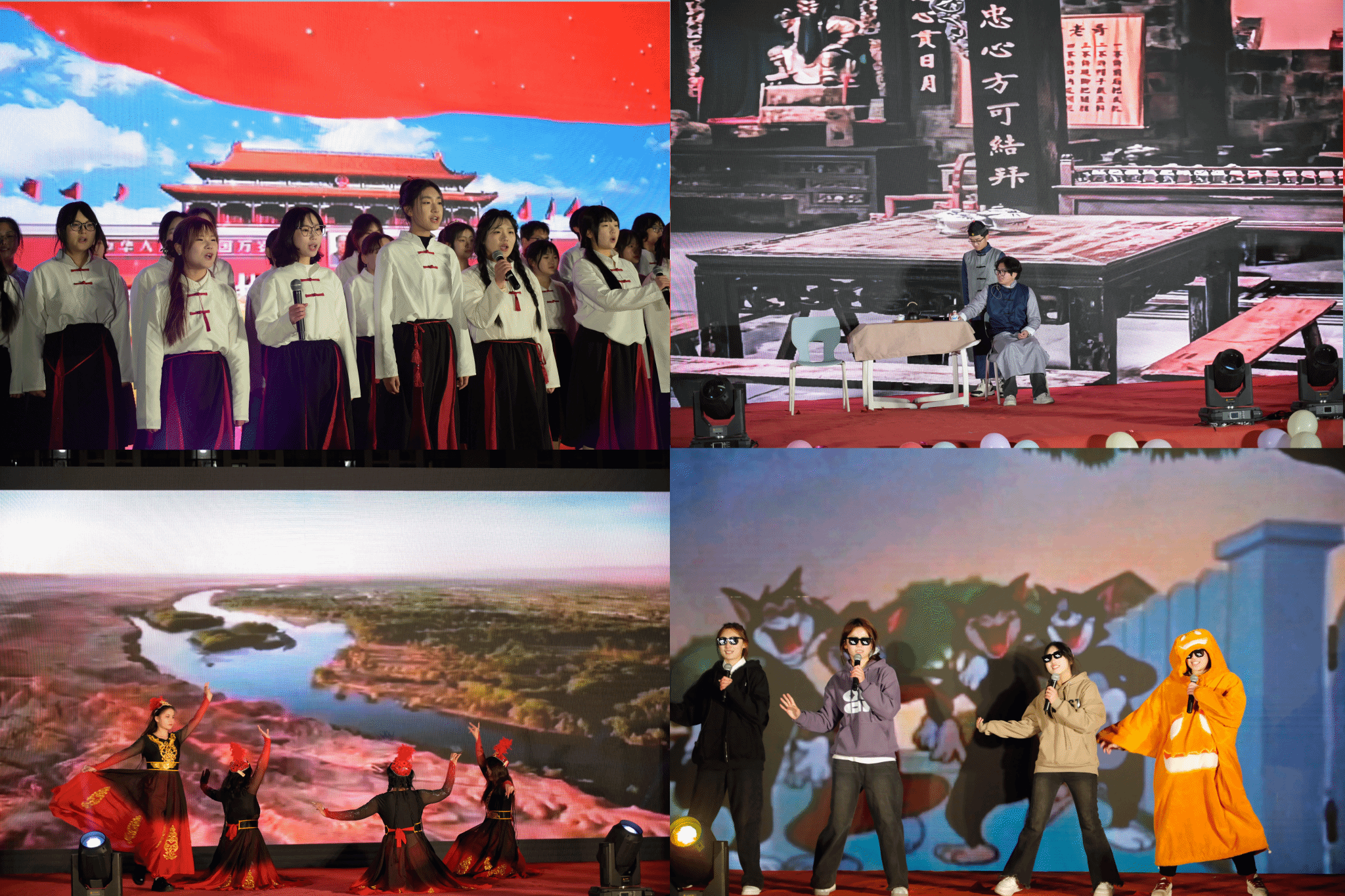 跨越新元,奔赴新愿,灯火辉煌的晚会舞台,诉说着文院学子回望过去的担当与实干,回响着展望2025年的祈愿与憧憬。乙巳新启、文院新韵、展耀新程,3个篇章拉开365英国上市公司官网元旦迎新晚会的精彩大幕。话剧、朗诵、舞台剧、器乐演奏、舞蹈、歌曲串烧等节目轮番上演,异彩纷呈的视听盛宴掀起现场阵阵热潮。话剧《字正腔圆》铿锵有力,古典舞《红马》意蕴悠长,大合唱《万疆》更是余音绕梁、气势磅礴。一幕幕生动的表演,一幅幅火红的画卷,文院学子用心、用情、用力传递着对祖国的无限热爱、对生活的无限热忱和对时代追梦的无限憧憬。