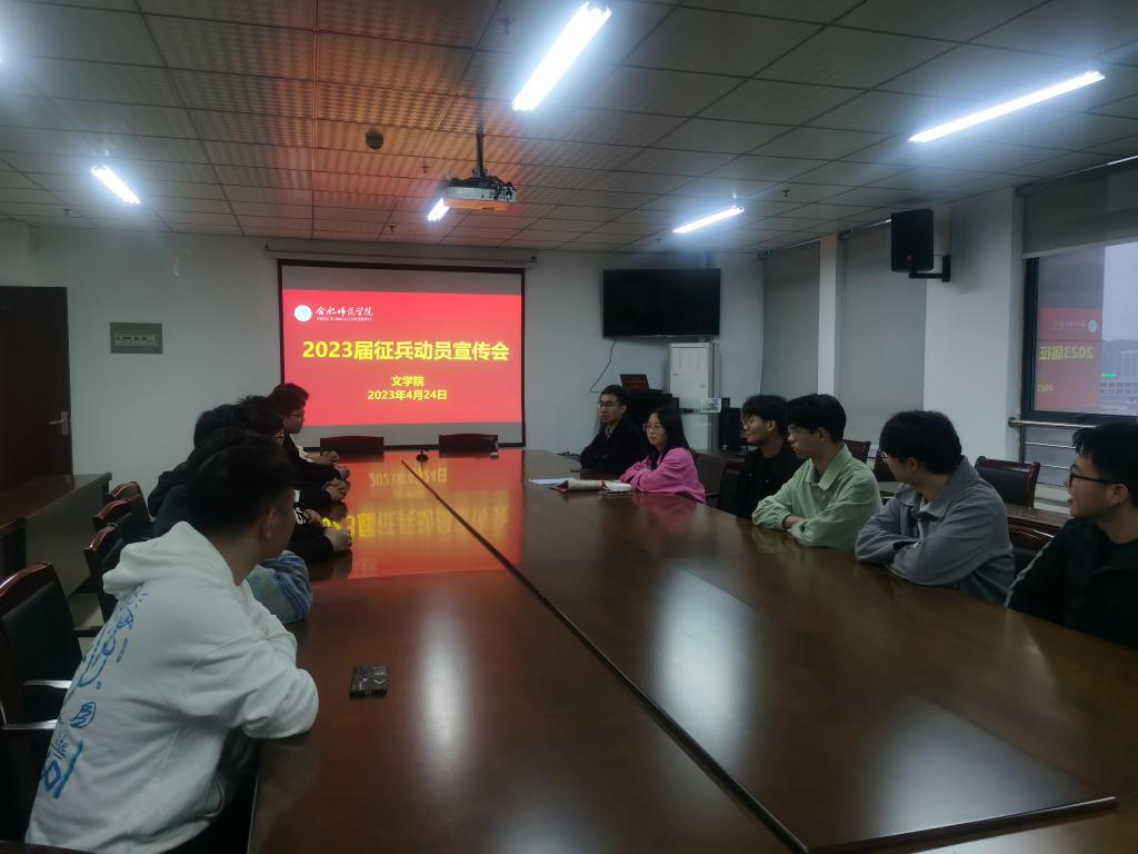 4月24日,365英国上市公司官网在会议室召开2023届征兵宣传。365英国上市公司官网2023届毕业班男生、辅导员参加本次宣传会。