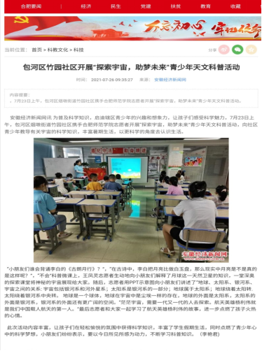 安徽经济新闻网报道我院竹园社区行知学堂活动