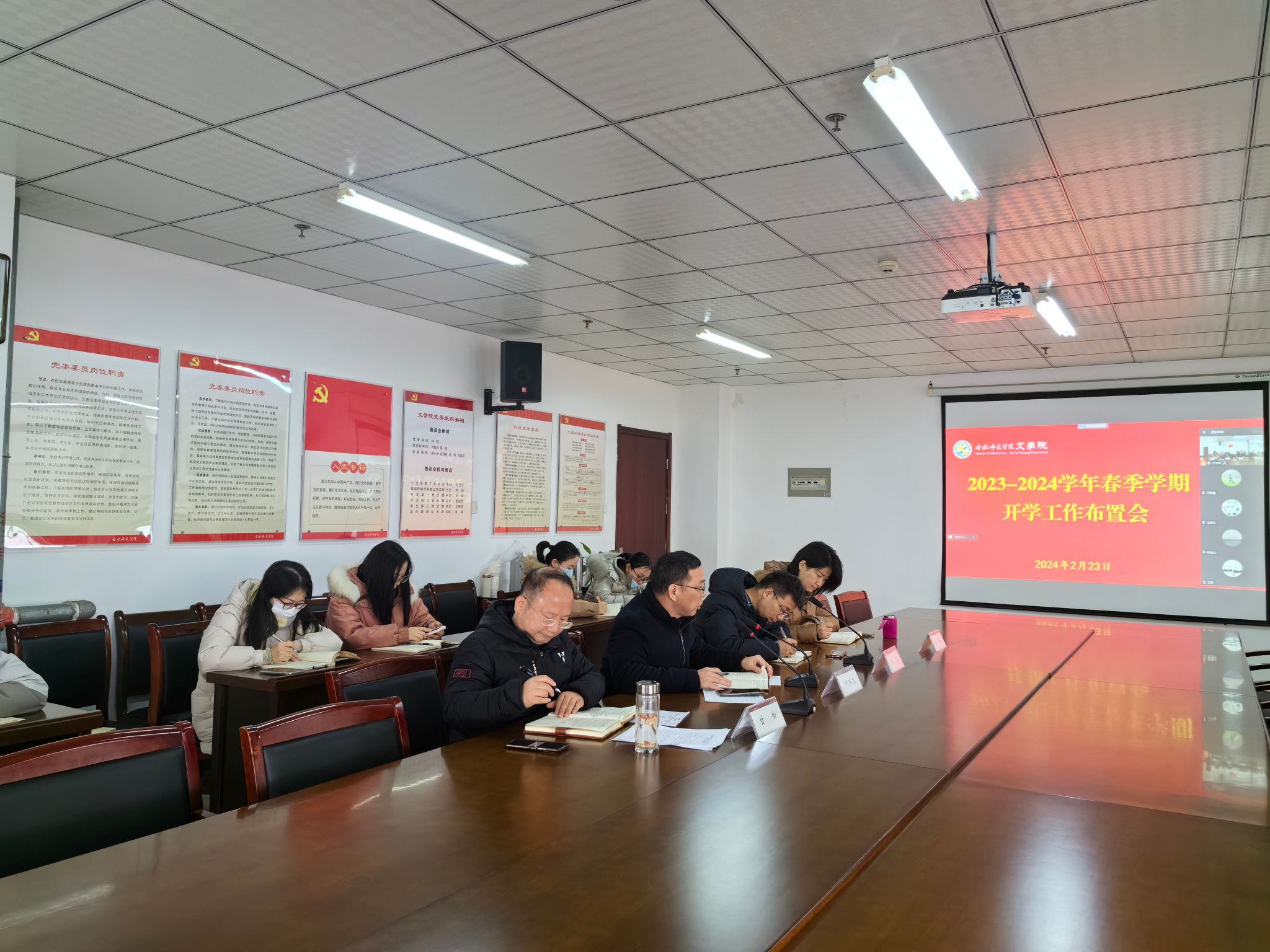 为了扎实做好新学期开学准备,确保开学各项工作顺利、有序进行,2月23日上午,365英国上市公司官网在行知楼802室召开2023-2024学年春季学期开学工作布置会,会议以线上线下结合的方式召开,院领导班子成员、全体教职工参加会议。会议由党委书记许锃主持。