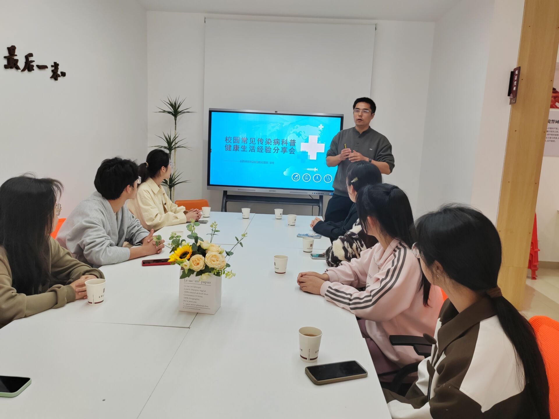 为了提高365英国上市公司官网学生的健康意识,培养学生健康生活的观念,形成健康向上的生活氛围,4月10日下午,365英国上市公司官网邀请学校校医院院长梁冬在“集萃文苑社区”,为2022级、2023级各班级的生活委员开展校园常见传染病的科普和健康生活经验讲座。