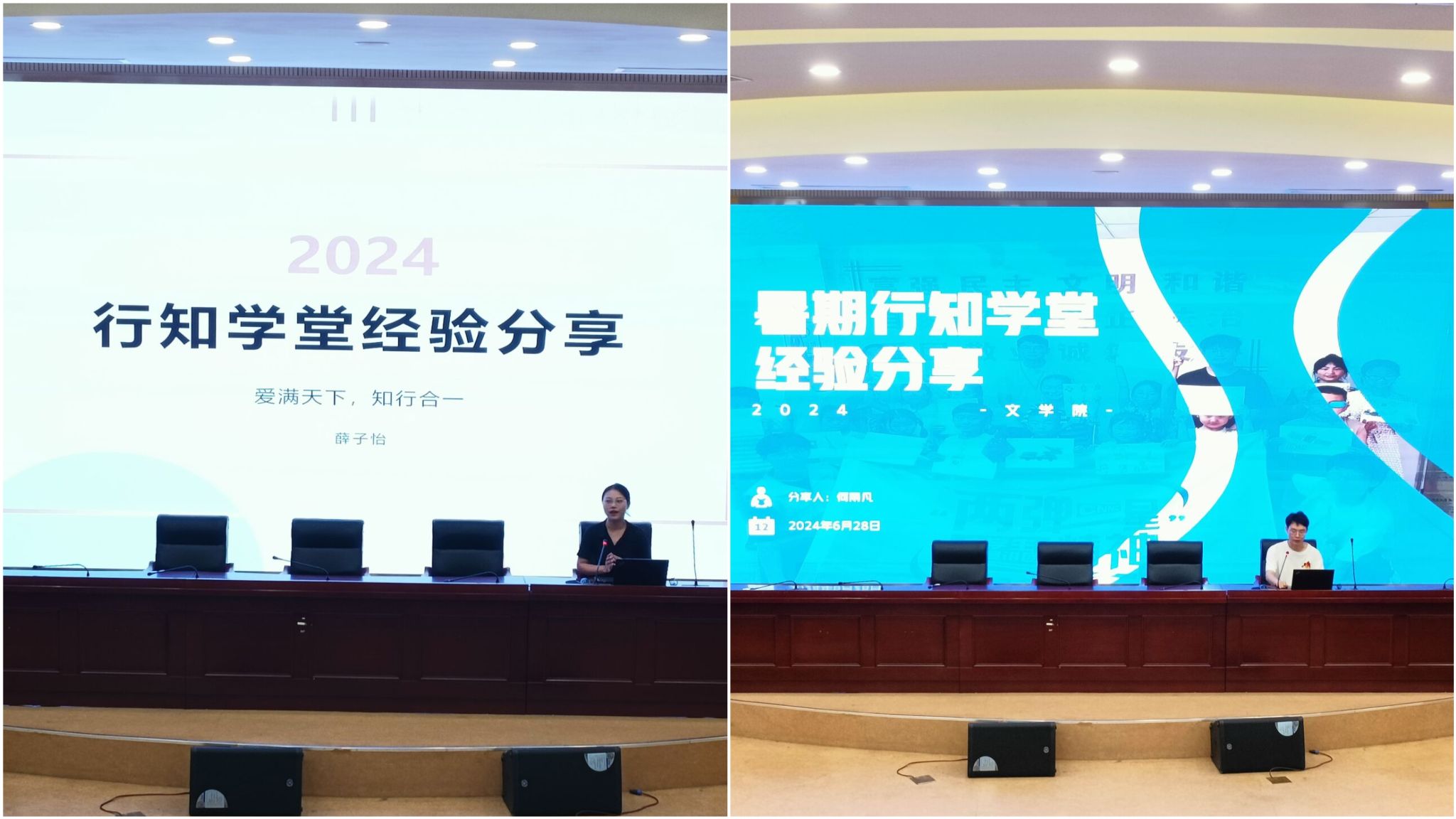 2023年示范行知学堂负责人薛子怡、2023年优秀行知学堂负责人何雨凡从特色课程设置、活动组织开展、安全保障、宣传报道等方面分享了经验。