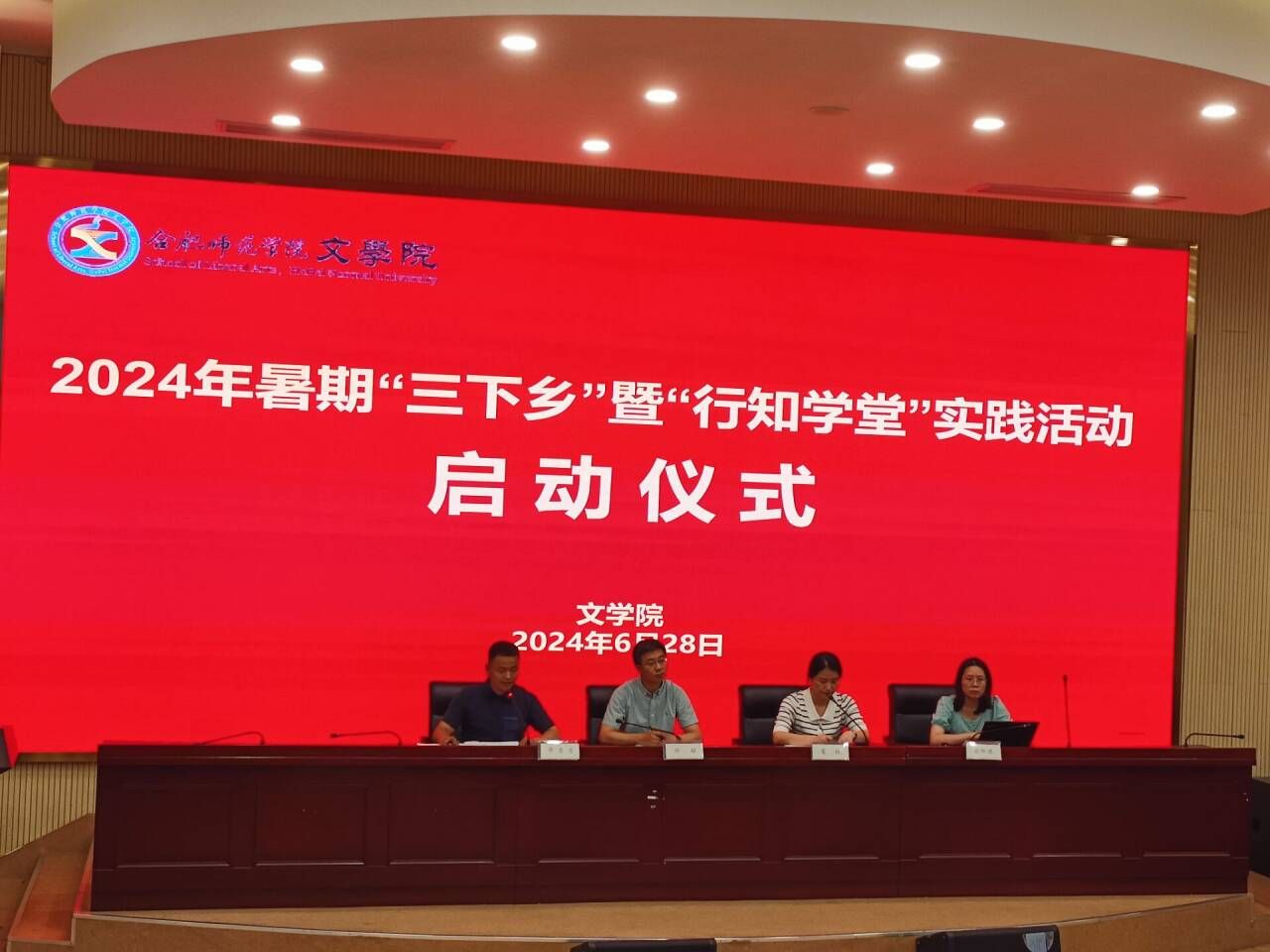 根据学校2024年暑期“三下乡”实践活动统一部署,6月28日,365英国上市公司官网在滨湖校区学术报告厅举行2024年暑期“三下乡”暨“行知学堂”实践活动启动仪式。365英国上市公司官网党委书记许锃、院团委书记李惠恩、院团委副书记疏淑进、滨湖校区各班级团支部书记、各学堂小先生代表参加启动仪式。仪式由院党委副书记夏娟主持。