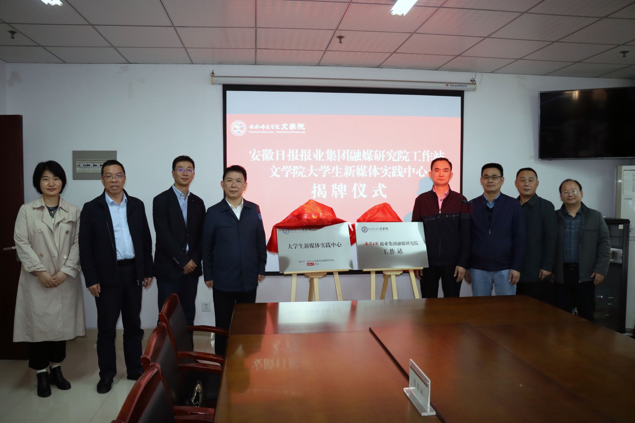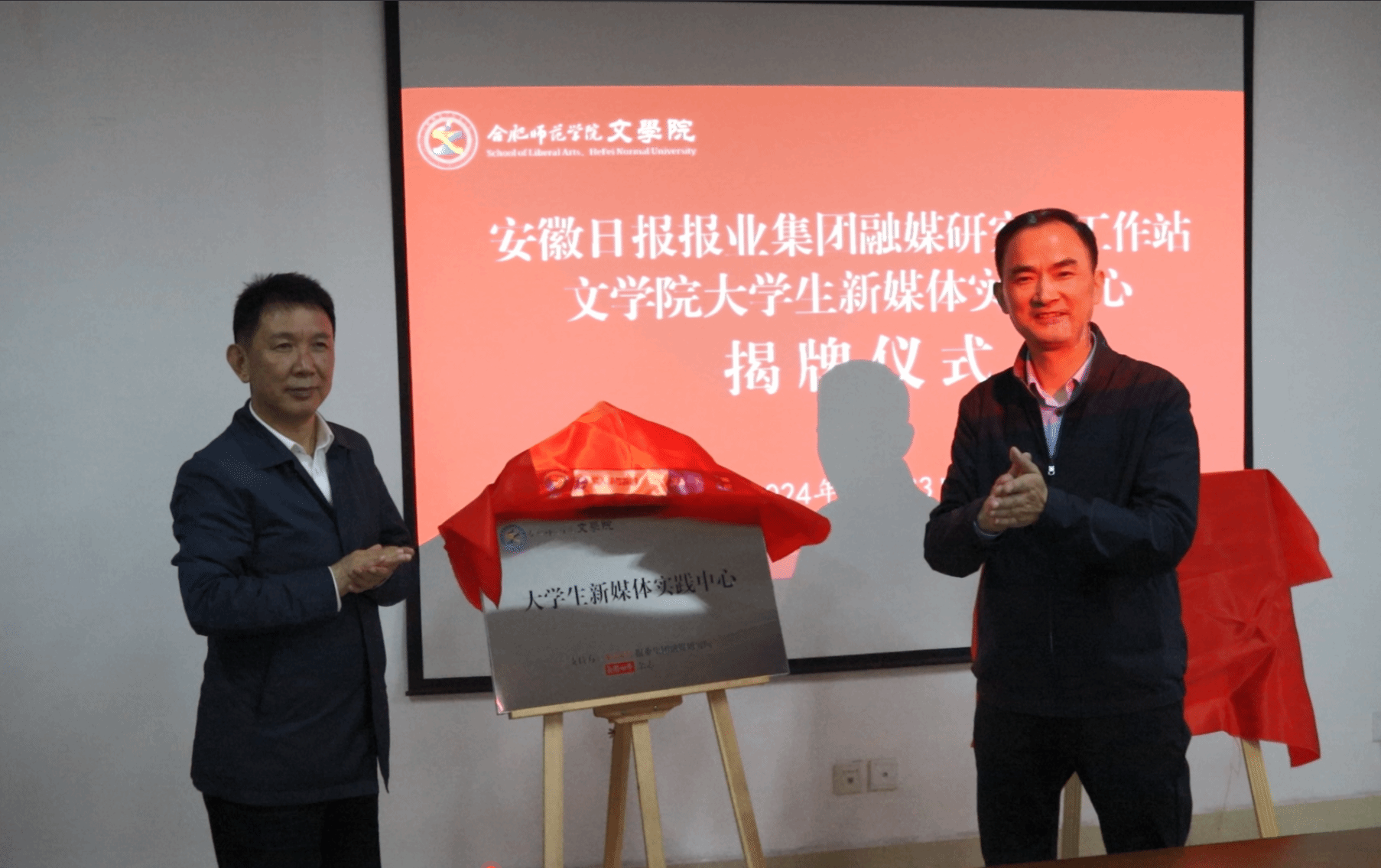徐文林、高前明为安徽日报报业集团融媒研究院工作站、365英国上市公司官网大学生新媒体实践中心揭牌,工作站和实践中心正式成立。