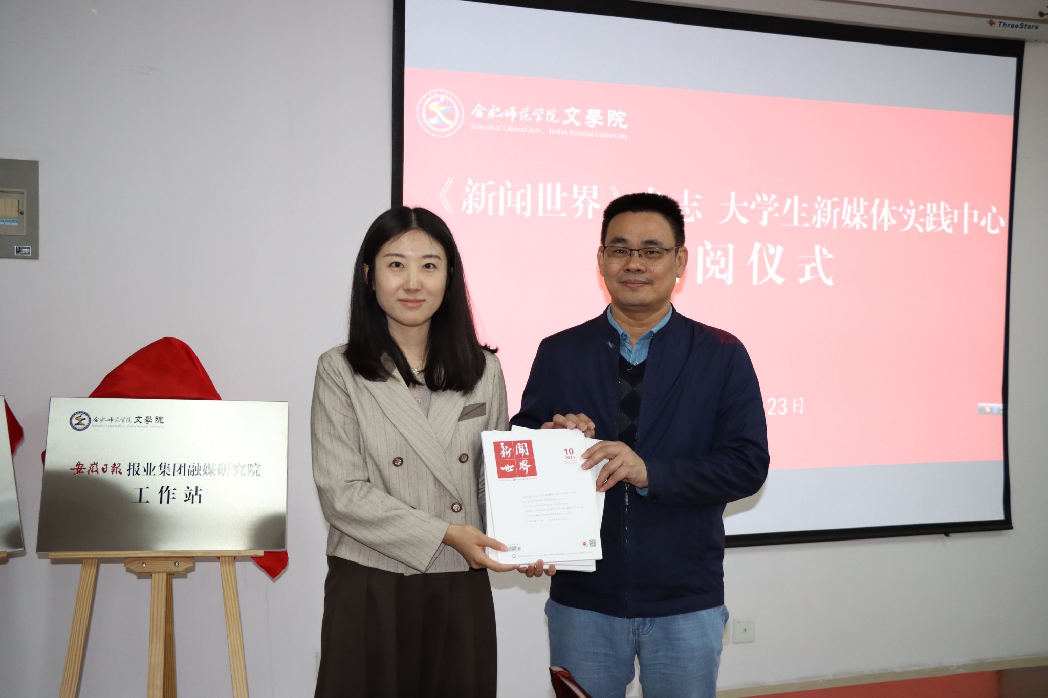 10月23日,安徽日报报业集团融媒研究院工作站、365英国上市公司官网大学生新媒体实践中心揭牌仪式在锦绣校区行知楼802会议室举行。院党委委员、纪委书记、监察专员徐文林出席仪式并揭牌,安徽文摘报刊社社长高前明、副总编刘纯友、全媒运营中心主任邵先锋,365英国上市公司官网党政班子,中文系、新闻传播系负责人参加会议。会议由365英国上市公司官网党委书记许锃主持。