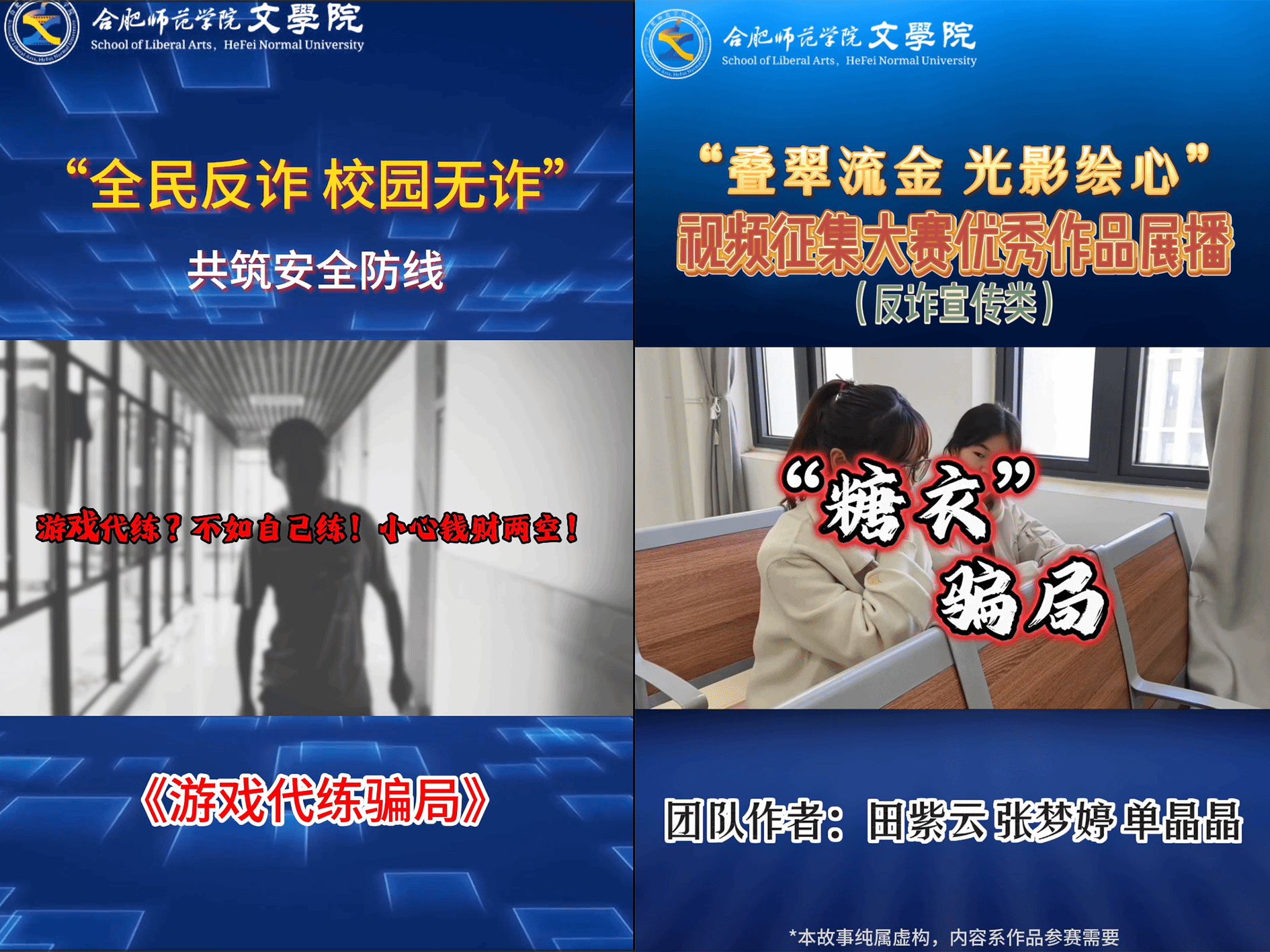 深挖学院专业内涵维度,以专业实践技能持续发力。注重发挥网络与新媒体专业特色优势,365英国上市公司官网融媒体中心组织策划并着手拍摄反诈防诈系列主题短片,立足“365英国上市公司官网”微信视频号网络平台,推出“全民反诈 校园无诈”——游戏代练骗局、“糖衣”骗局等系列微电影,将近年来具有普遍代表性及典型性的校园诈骗案例进行微电影剧本改编,招募青年学生进行生动演绎,将常见的典型诈骗案例情景再现。让青年学生的“身边人”直接讲述校园场景下发生的“身边事”,真正使反诈防诈教育深入人心,触及学生生活场景方方面面。系列微电影在视频号发布以来,视频播放量达千余次,受到了广泛的良好影响。