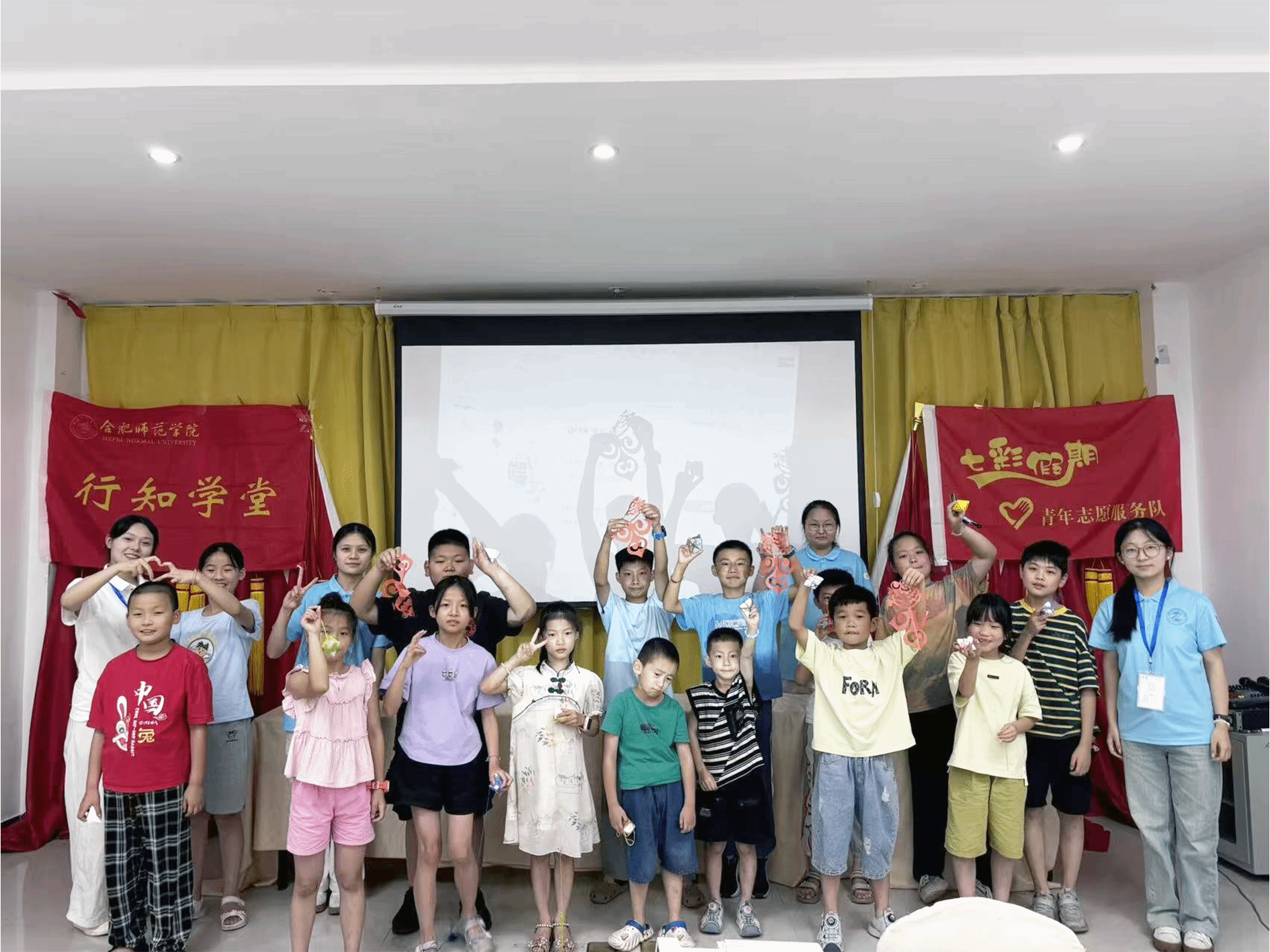 活动伊始,社区活动室早早地便充满了孩子们欢快的笑声。得知有非遗文化课程,孩子们怀揣好奇与期待,提前来到现场。他们眼神里闪烁着对未知知识的渴望,如同等待开启宝藏盒子一般,盼望着课程开始。而另一边,行知学堂的“小先生”们身着整齐统一的服装,带着满满几箱剪纸材料包,脸上洋溢着热情的笑容,有条不紊地做着课前准备,要给孩子们呈现最精彩的内容。