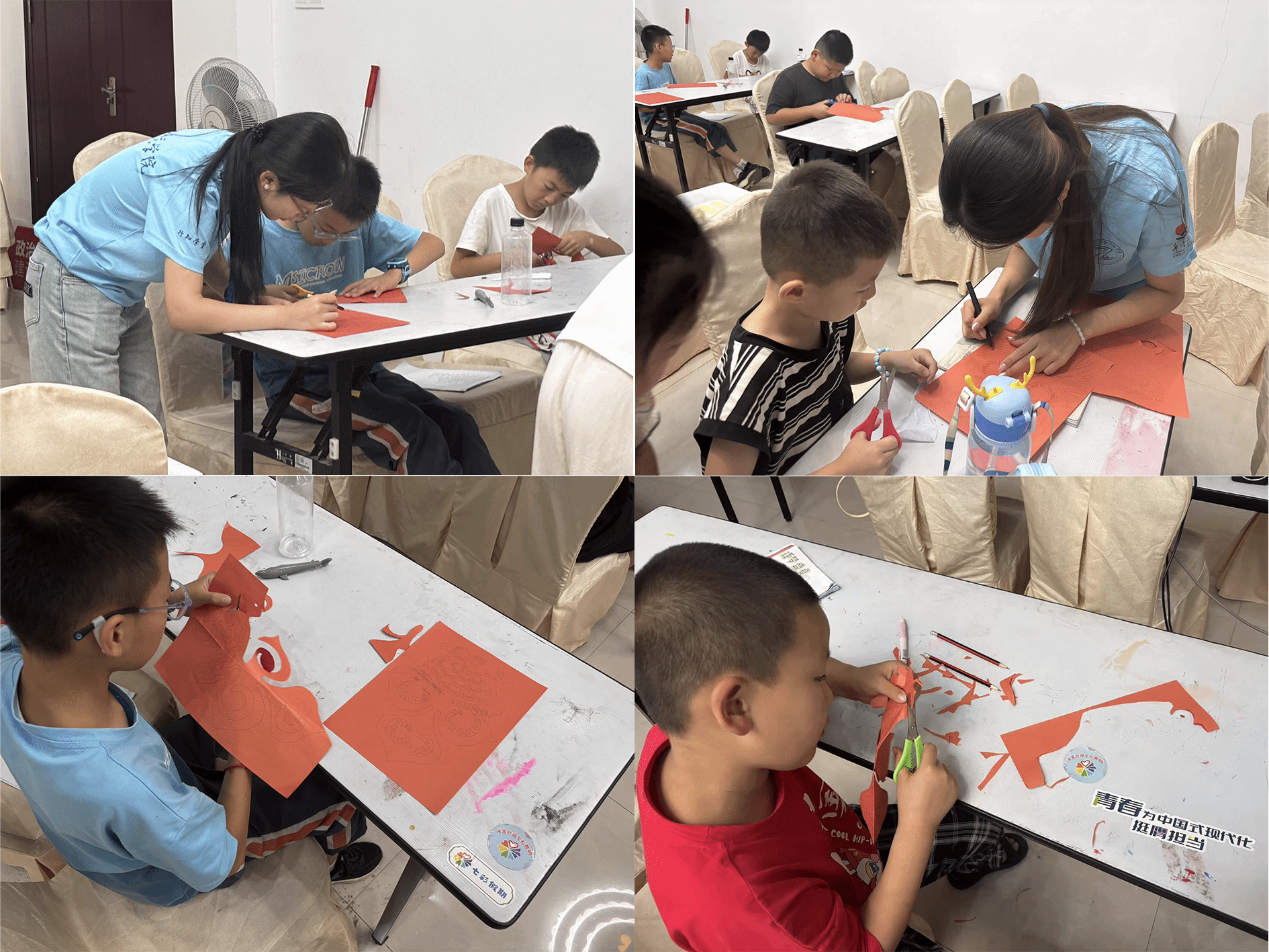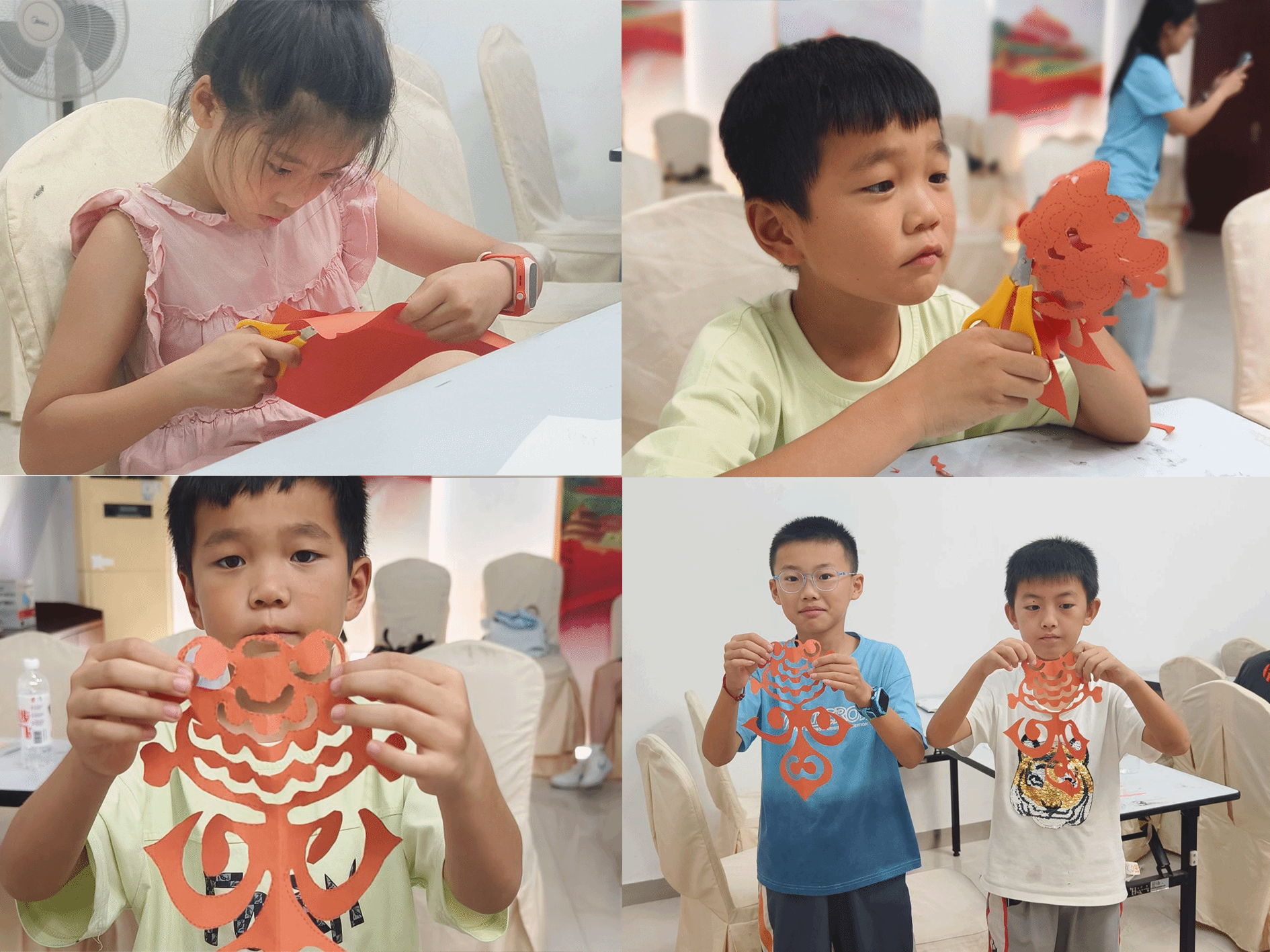 有个小男孩剪坏了,沮丧地嘟囔:“老师,我剪坏了,不好看。”“小先生”们笑着摸摸他头:“没关系呀,剪纸就是不断尝试,失败了重新来,每一次失败都能让你下次剪得更棒,说不定再试试,就能剪出超好看的!”在鼓励下,小男孩重新动手,反复尝试后,终于剪出满意作品,举着欢呼,那股子自豪劲儿,感染了在场所有人。