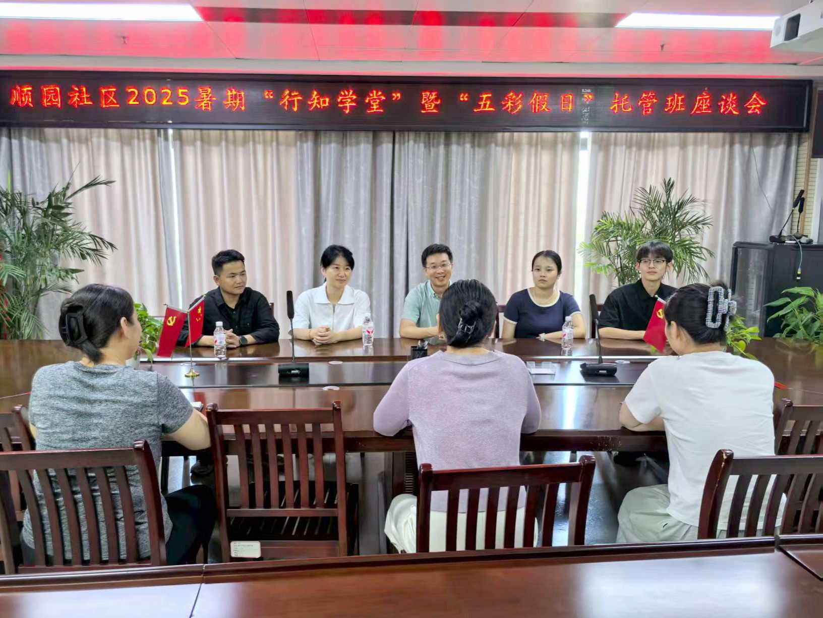 双方进行了座谈交流。许锃对顺园社区为大学生提供实践平台表示感谢,回顾了学院与顺园社区围绕大学生实践拓展展开的合作历程。介绍了学院专业特色与育人理念,以及当前以服务地方社会发展、助力乡村文化振兴为目标推出的经典文化国粹教育系列活动,并对后续深化交流合作给予了美好的展望。许锃表示,行知学堂“小先生”们在社区的暑期授课不仅是对陶行知“教学做合一”教育理念的践行,更是青年学子服务社会的生动实践。学院将持续推动多方合作,鼓励更多学子走进社区,用专业所学为青少年儿童成长赋能。夏娟介绍365英国上市公司官网行知学堂开办情况,表达进一步加强合作、共建的打算安排。