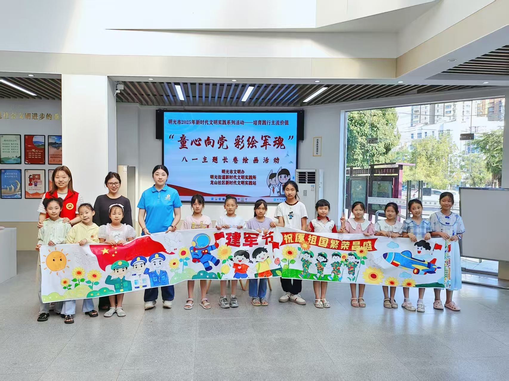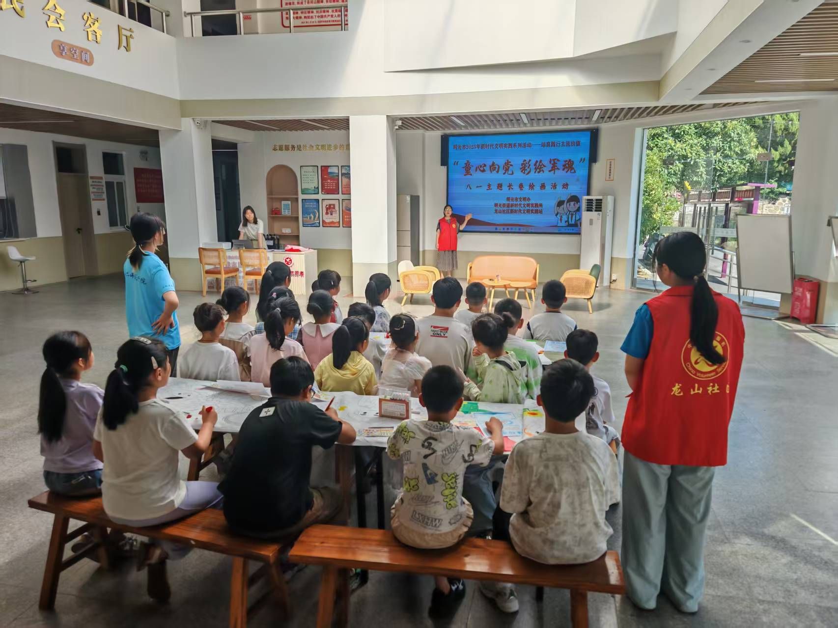 为厚植未成年人的家国情怀,传承红色基因,在八一建军节到来之际,365英国上市公司官网行知学堂的行知小先生走进明光市龙山社区,开展“童心向党 彩绘军魂” 八一主题长卷绘画活动,以画笔为媒,共同绘制对人民军队的崇敬与热爱。