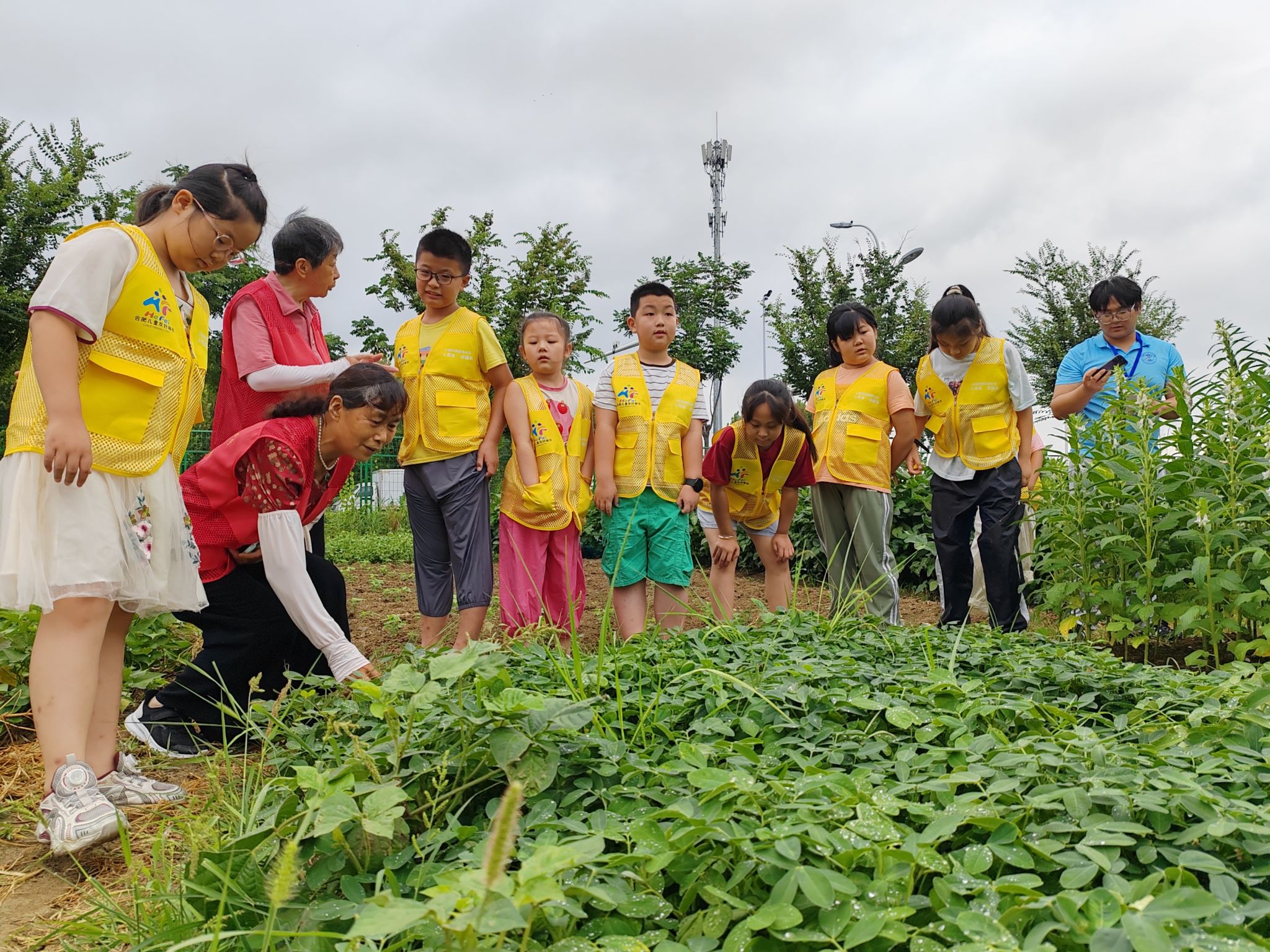 在田间,经验丰富的“红大姐”志愿者化身为“自然导师”。她蹲下身子,耐心地向孩子们介绍着眼前各种农作物的特点。从叶片的形状到植株的高度,从生长的周期到养护的要点,志愿者阿姨讲得细致入微,孩子们围在她身边,听得津津有味,不时提出自己的疑问和见解。通过近距离的观察和触摸,孩子们对农作物的生长过程有了更直观的认识,也深刻体会到了“谁知盘中餐,粒粒皆辛苦”的含义。