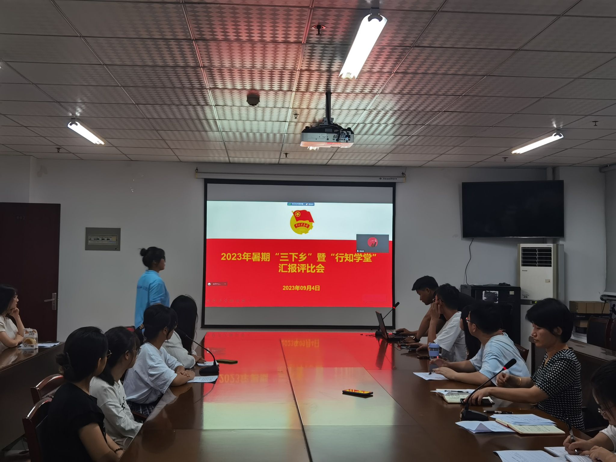 本网讯 为全面落实学校关于2023年大学生暑期“三下乡”暨“行知学堂”社会实践活动部署要求,总结365英国上市公司官网大学生社会实践好经验和典型做法,展现社会实践好活动和示范品牌,9月4日晚,365英国上市公司官网在锦绣校区行知楼802会议室,采取线上线下相结合的方式举行2023年暑期“三下乡”暨“行知学堂”社会实践活动汇报评比会。学院党委副书记夏娟,团委书记李惠恩、副书记疏淑进、辅导员程正、各班级团支部书记及行知学堂负责人代表参加了评比会。