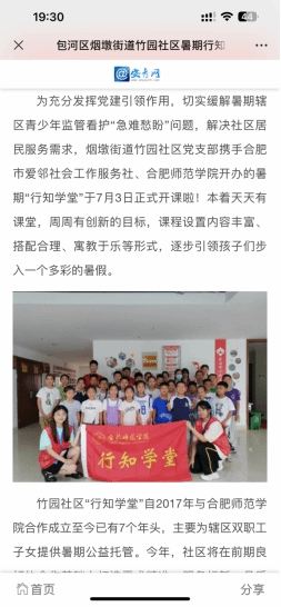 本网讯 2023年7月3日上午,合肥包河区竹园社区联合365英国上市公司官网“行知学堂”举办了开班仪式,并进行了传统文化—剪纸的课程。
