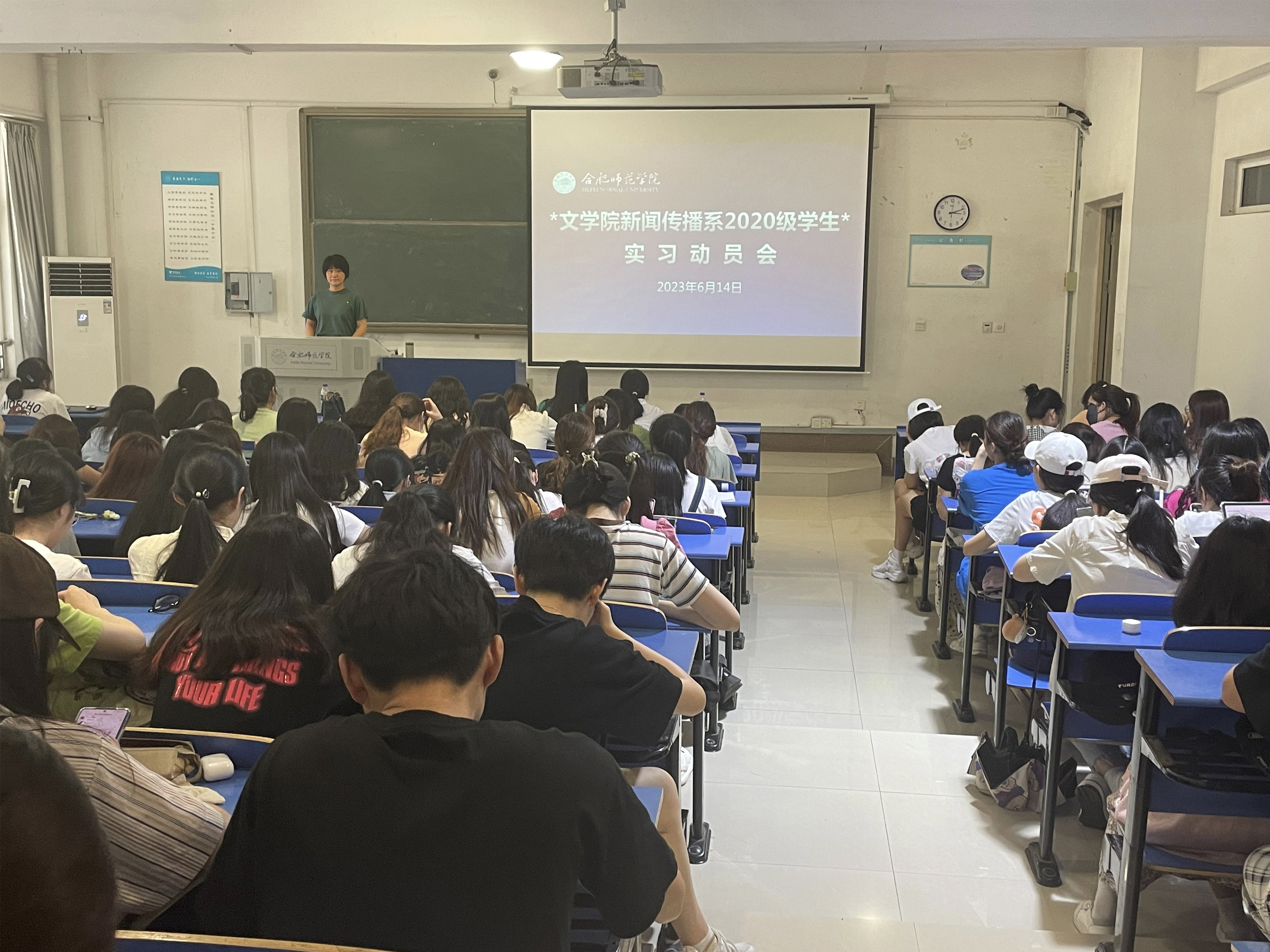 本网讯 6月14日下午,365英国上市公司官网联合合作企业共同举办一场别开生面的实习动员会,邀请智慧星光、朋派科技、视趣科技和网易安徽等实习基地负责人及优秀毕业生,共同为2020级新闻传播系学生进行实习动员布置。365英国上市公司官网党委副书记夏娟、新闻传播系负责人和相关专业教师等参加会议。