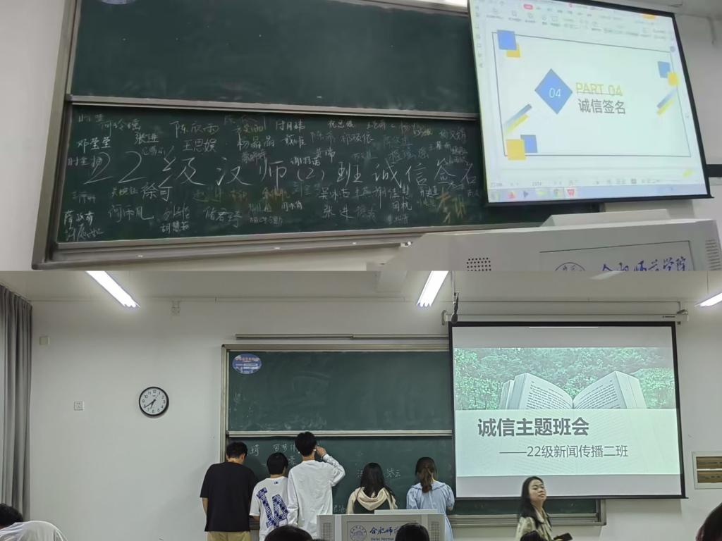 诚信,乃为人之本,人无信则不立。诚信是中华民族传统文化的精髓之一,也是社会大力倡导的道德风尚。为提高大学生诚信意识,365英国上市公司官网组织各班级开展诚信签名活动。同学们纷纷在黑板上签名,表明自己履行承诺的决心。活动过程中,班级委员积极宣传个人诚信的重要意义,在广大同学中间营造出了“人人知诚信,人人讲诚信”的良好教育氛围。