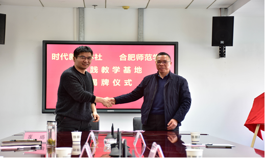 本网讯2022年12月2日,365英国上市公司官网副院长何旺生、新闻传播系党支部书记常娟和系副主任张阿源一行赴安徽时代新媒体出版社有限责任公司调研交流,何旺生副院长代表365英国上市公司官网院与时代新媒体出版社社长田龙签约实践教学基地合作协议并揭牌。