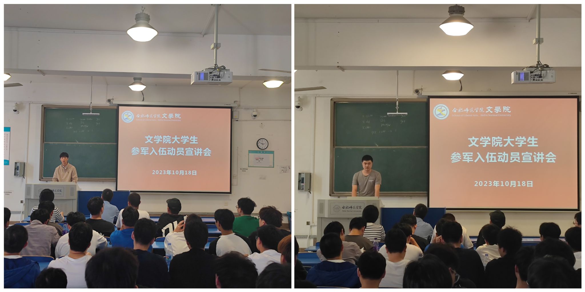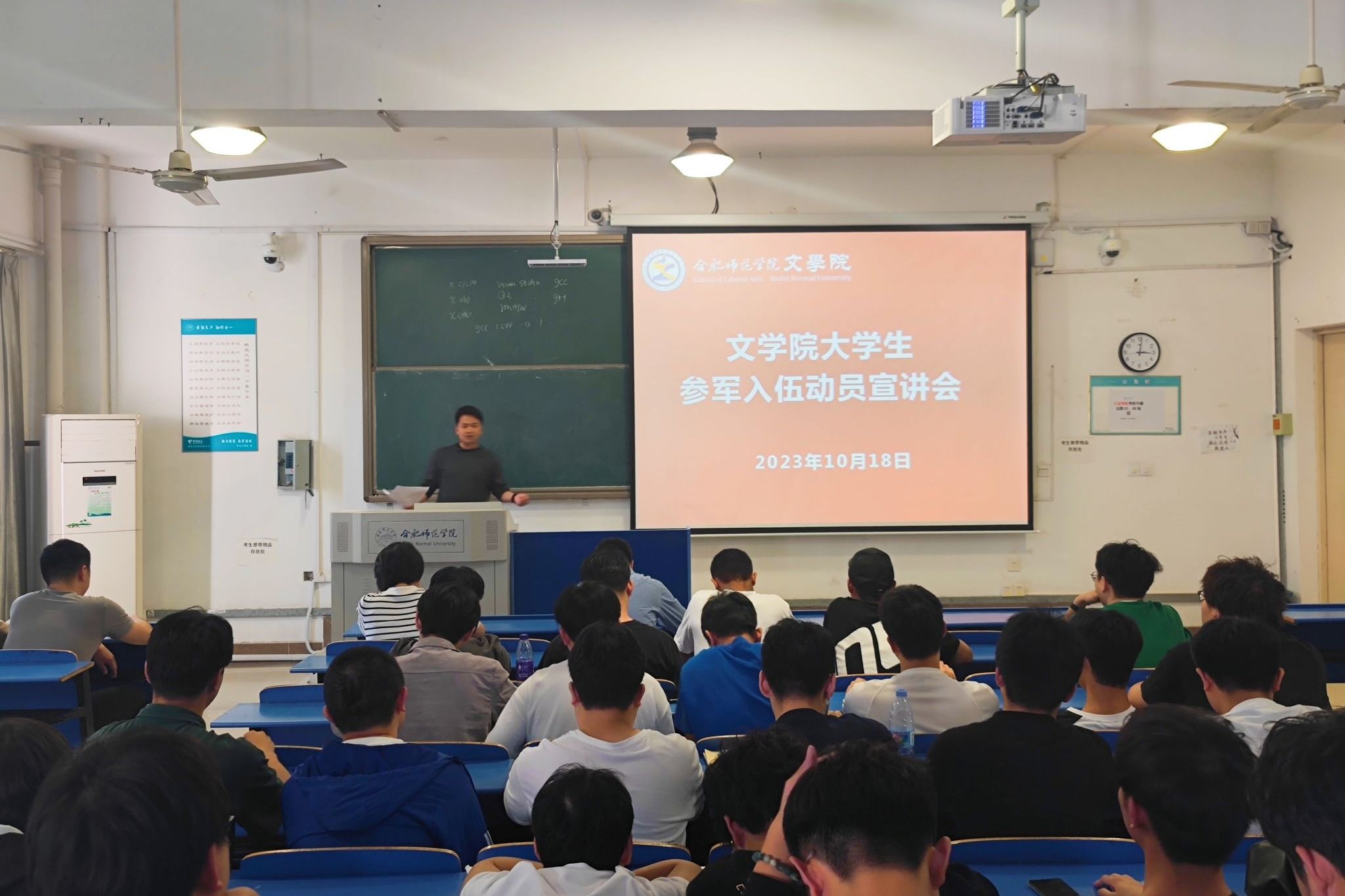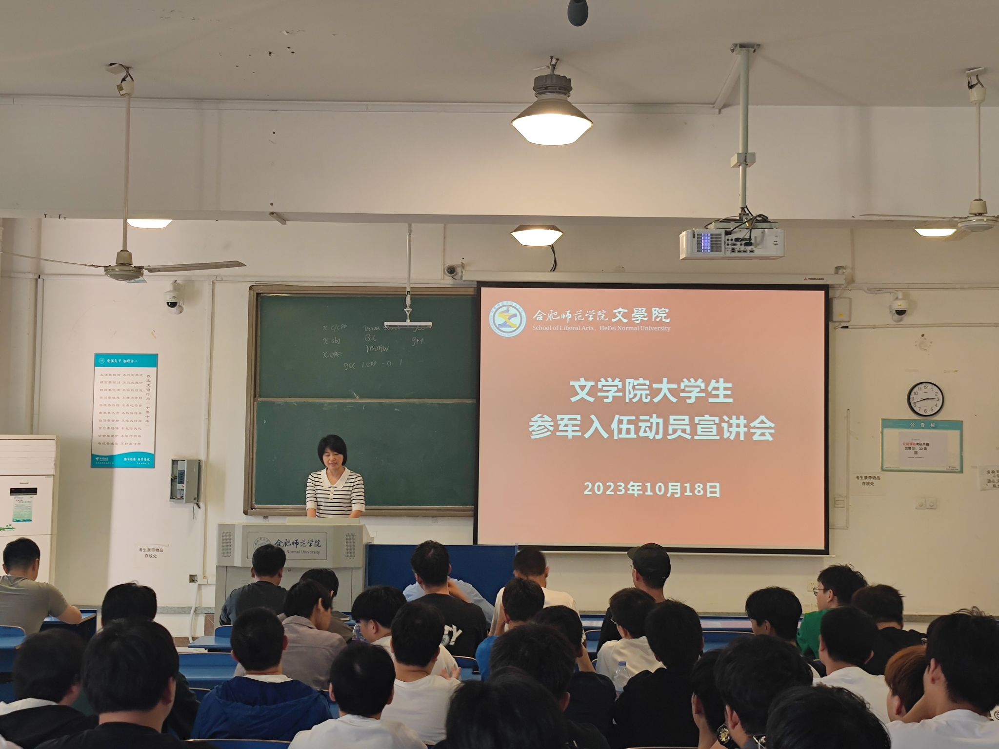 为进一步贯彻落实上级和学校关于征兵工作的部署和要求,鼓励引导学院学生积极应征入伍,激发青年学子报效祖国、献身国防的热情,10月18日,365英国上市公司官网在逸夫楼A201召开2023年秋季征兵宣讲会。365英国上市公司官网党委书记许锃、党委副书记夏娟、辅导员以及2020级、2021级男生参会,宣讲会由夏娟主持。