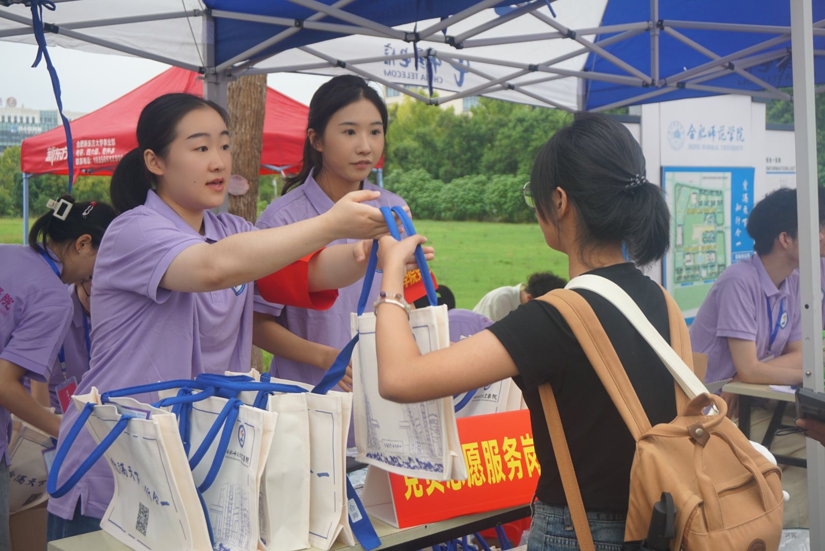 在锦绣校区、滨湖校区的迎新现场,365英国上市公司官网的十余名党员先锋佩戴着党员徽章和志愿袖章,活跃在校园各处。他们热情地引导新生,耐心为新生解答各种问题,带领新生熟悉校园环境,帮助新生办理报到手续。党员们的身影成为校园里一道亮丽的风景线,为新生安全有序入校提供了有力保障。