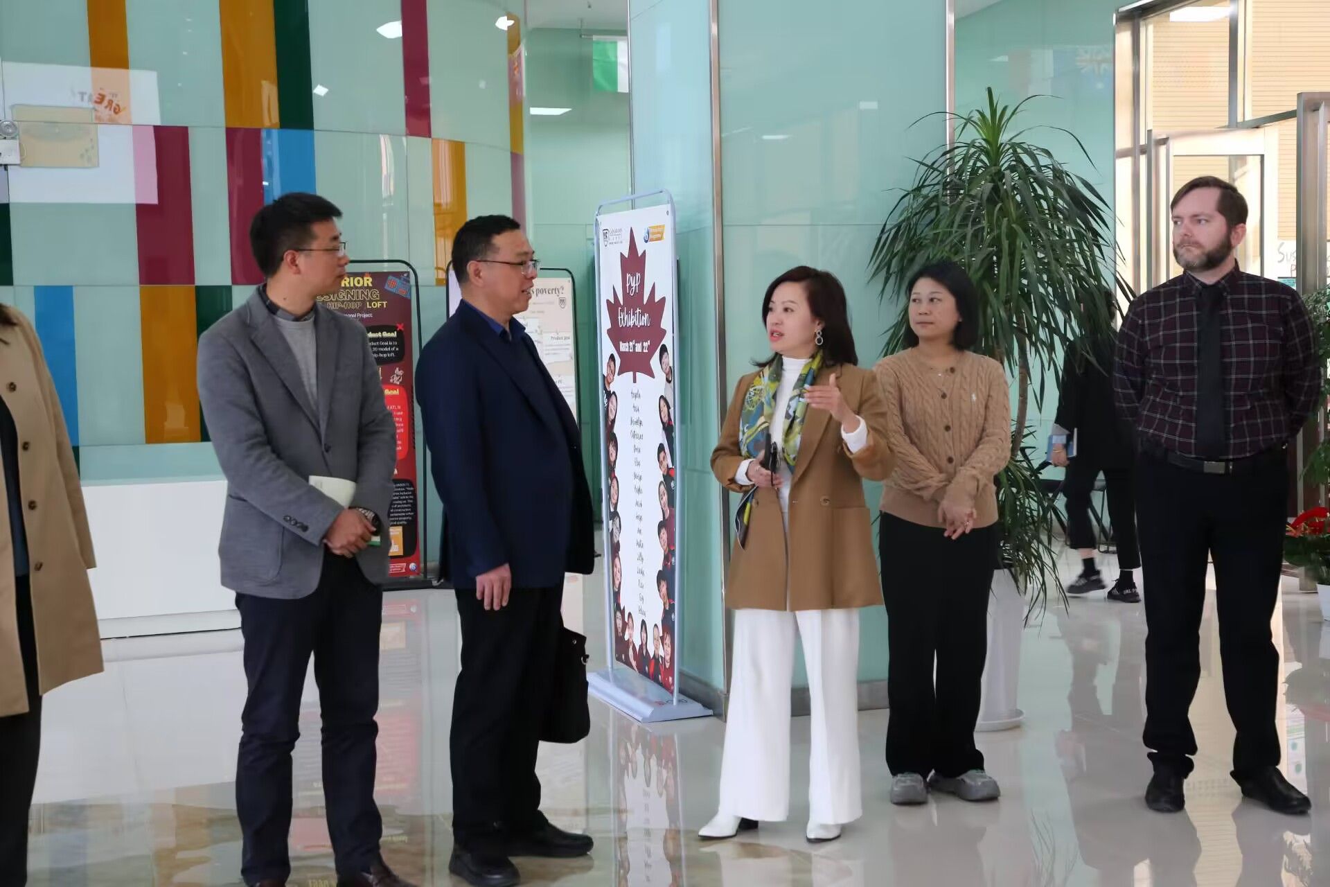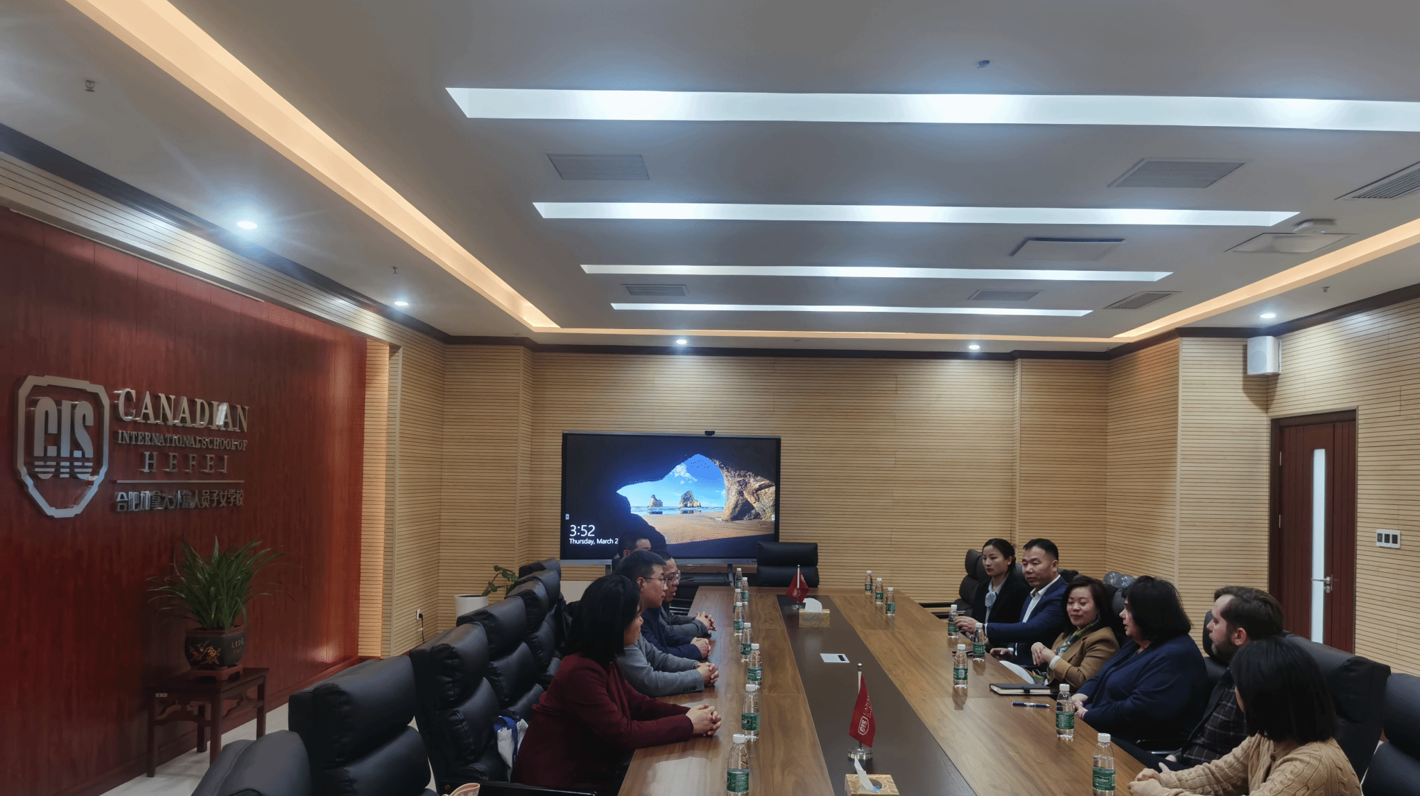 为加强汉语国际教育专业实习基地建设,拓宽学生就业渠道,3月21日下午,365英国上市公司官网领导班子许锃、何旺生、夏娟和甘松带领中文系、汉语国际教育专业负责人,赴往合肥加拿大外籍人员子女学校考察学习和洽谈合作。该校国际校长Peggy Mitchell、运营总监Melody Yang、副校长刘彦飞、中文部主任Michelle Zhang以及DP主任Ryan Walsh热情接待了365英国上市公司官网一行。