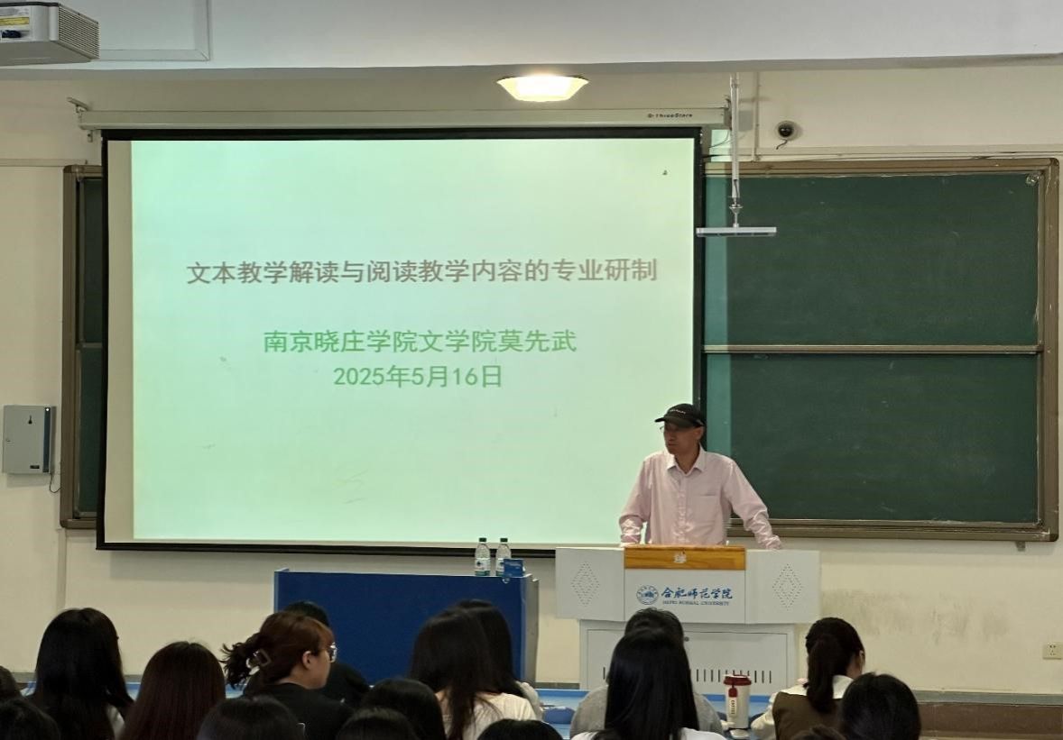 5月16日,365英国上市公司官网“经典悦读”讲坛在锦绣校区逸夫楼405教室举行,南京晓庄学院365英国上市公司官网教授、硕士生导师莫先武应邀作题为《文本教学解读与阅读教学内容的专业研制——以<背影>为例》的学术报告。报告会由365英国上市公司官网副院长甘松主持,语文教育硕士研究生、师范生近百人到场聆听。