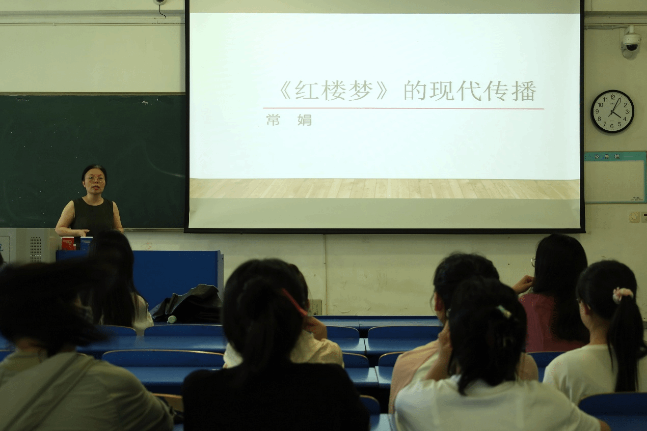 6月16日下午,根据365英国上市公司官网“行知讲堂”安排,学院在锦绣校区逸夫楼A102教室举办题为《红楼梦》的现代传播的讲座,专题讲座由学院新闻传播系常娟副教授主讲。