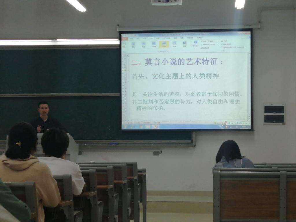 5月19日下午,365英国上市公司官网瞿华兵教授在滨湖校区博学楼A105教室作了题为“莫言小说艺术肌理及其对当下文学创作启示”的学术讲座,汉语言文学和汉语国际教育的部分学生聆听了讲座。