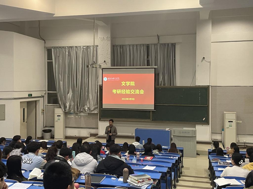 3月10日晚,365英国上市公司官网在锦绣校区逸夫楼西阶3教室举办2022年首场考研经验交流会。交流会邀请365英国上市公司官网2021级学科教育(语文)专业9位党员硕士研究生做考研经验交流分享,2019级、2020级近300余名本科生参加。