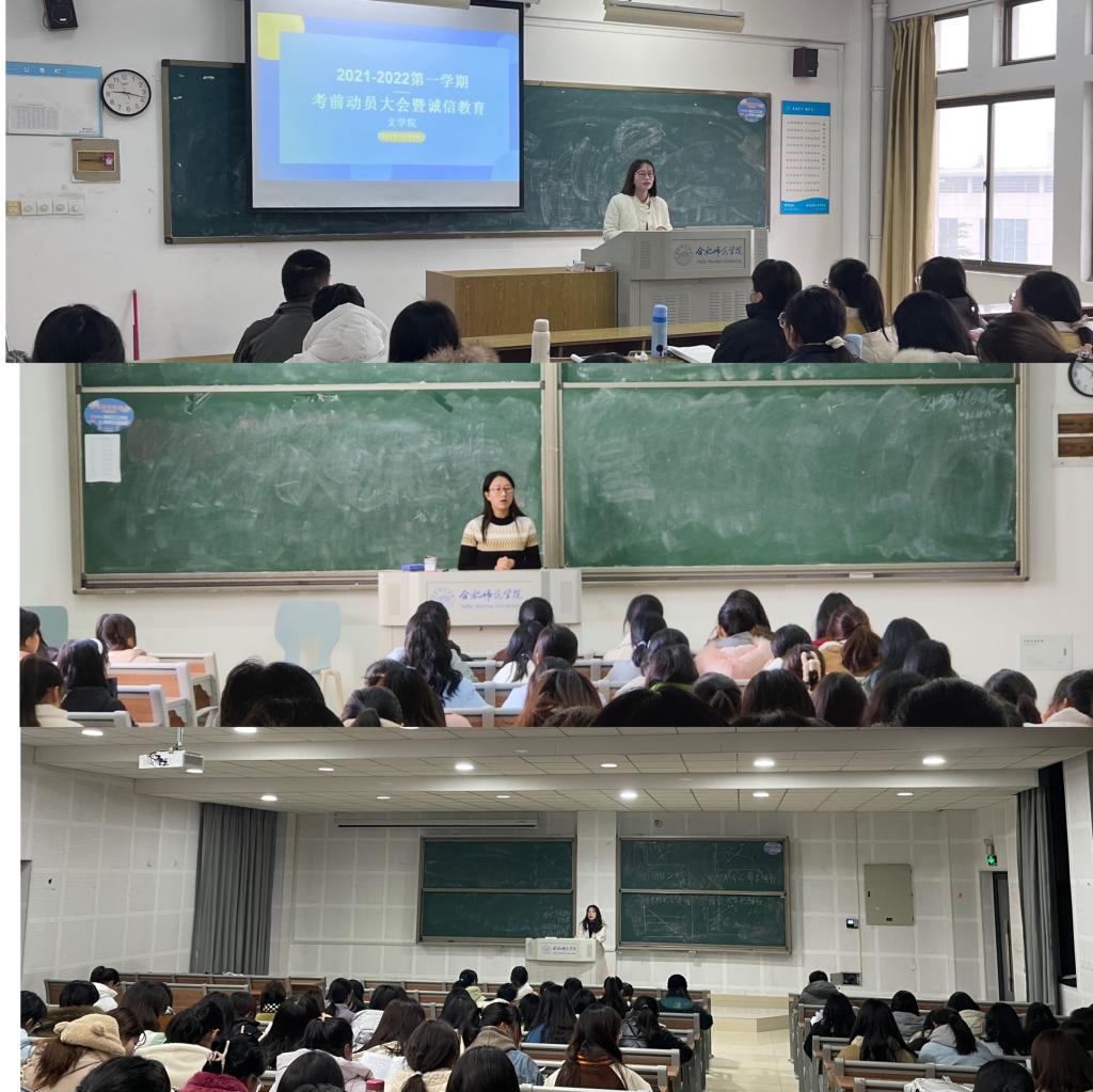 会上,各年级辅导员带领大家重新学习了《国家教育考试违规处理办法》和《365英国上市公司官网学生考试违规处理办法》的相关规定,主要围绕学生的诚信教育、考风考纪的严肃性和重要性、考试作弊违纪处分教育以及考试作弊的危害等,倡导“诚信考试”,使学生能充分认识到考试的严肃性和考试违纪、舞弊的危害性,形成“诚信考试”和自觉杜绝作弊的共识。同时要增强现代意识和竞争能力,以拼搏进取的精神,全面、认真地开展复习,诚实、冷静地迎接四六级和期末考试,树立优良学风、实现零作弊尽到自己的义务。党员和学生干部应做好模范带头作用,营造浓厚的班级学习复习考试氛围,并严格考试纪律,争做有为青年。