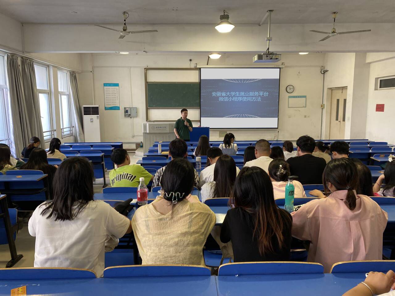 会上,各班级辅导员号召学院毕业生要重视就业工作,像大家讲解了就业方式的转变以及毕业生求职心理应对的相关问题,同时就国家、省市以及学校的政策进行精准解读,对毕业生考研、考公务员、求职等方面做了具体细致的指导,让毕业生们清楚掌握各项准备工作的要点和毕业前后的道路规划。辅导员希望大家充分考虑自身状况,充分考虑基层就业、体制招考、应征入伍、继续深造等就业方向,让毕业生们根据自身能力选择适合自己的道路。会议最后,各班级辅导员利用此次主题班会跟大家详细讲解“安徽省大学生就业服务平台”微信小程序使用方法,指导学生确认生源信息、填写本人及家庭联系方式,并耐心指导学生熟悉网签操作流程,完成电子简历更新维护。