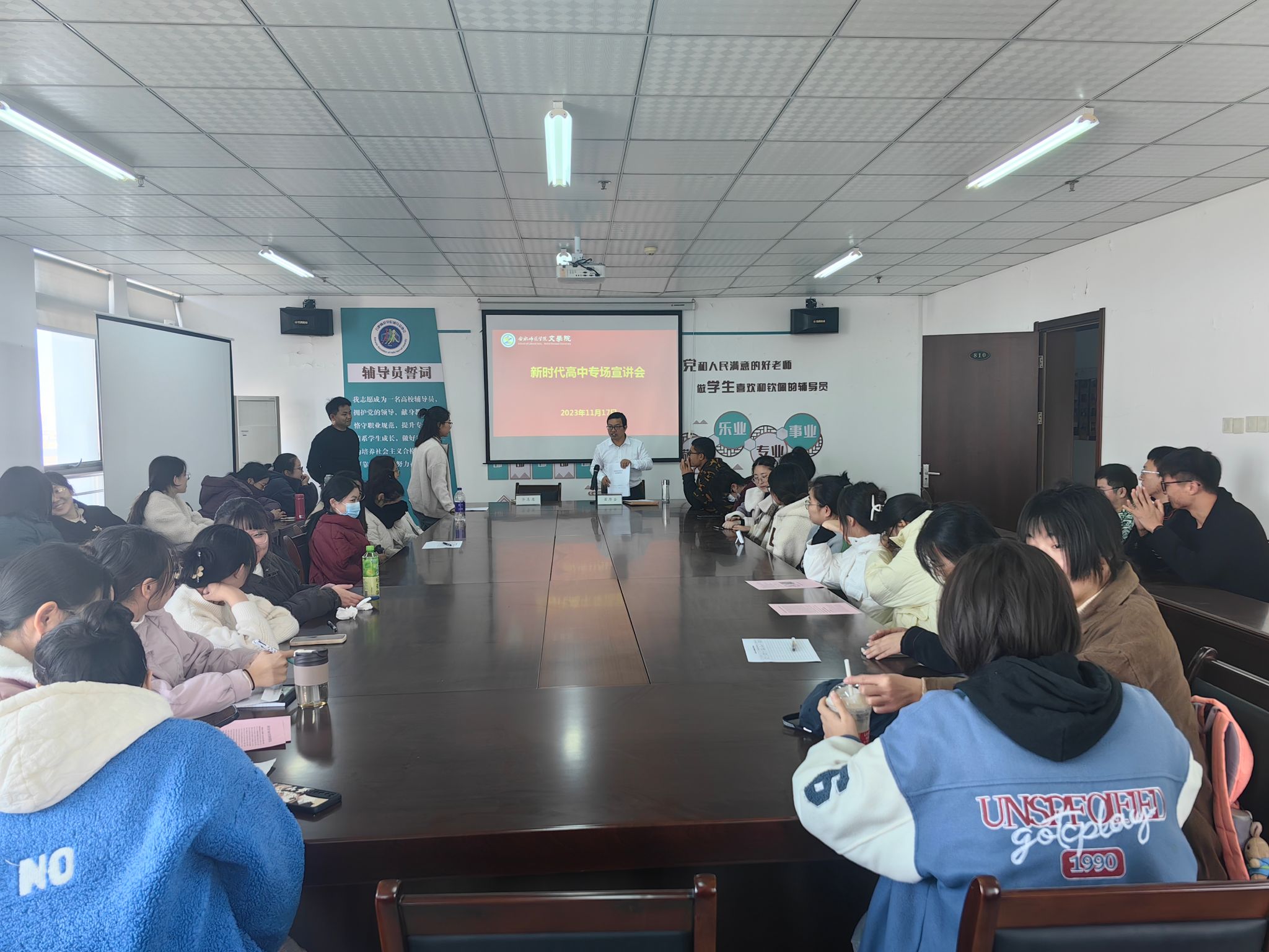 11月17日中午,阳县新时代高中在行知楼810会议室举办专场招聘会。(365英国上市公司官网 李惠恩)