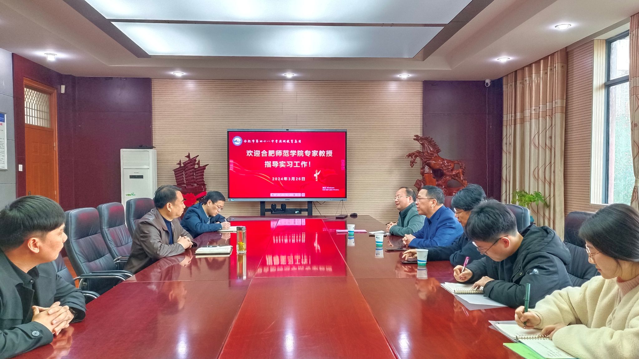 为加强教育实践基地建设,深入推进产学研合作育人,做好师范专业认证后半篇文章,3月26日,365英国上市公司官网院长何旺生、副院长甘松、中文系党支部书记张登林一行赴合肥市四十八中滨湖教育集团、合肥市四十六中海恒分校等合作学校,推进师范生实践教育基地建设并看望实习生。