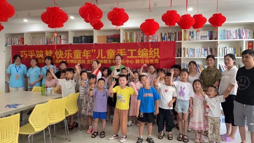 锦绣社区党员示范“行知学堂”自创办开始,报名学生众多,为了更好惠及社区更多的孩子,我院锦绣社区党员示范“行知学堂”的“小先生”们同蓬莱居民区新文明实践站联合徳颐顺老年服务中心与静笃悦书房一起,组织了一次“巧手筑梦,快乐童年”行知学堂之儿童手工编织小课堂。