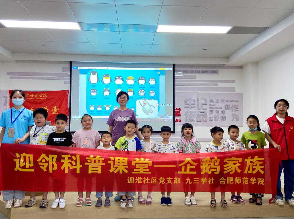 九三学社安徽省委员会在这个暑期走进社区、走进学生,深入开展百名专家乡村学堂讲科普主题实践活动,扎根推进双树双建,主讲人郭丽教授受邀为我院在义城街道迎淮社区的“行知学堂”开办了一场关于“企鹅家族”的科普讲座。参加本次活动的有“行知学堂”的“小先生”、小学员及家长、社区招募的对本次讲座感兴趣的社区居民子女及家长。