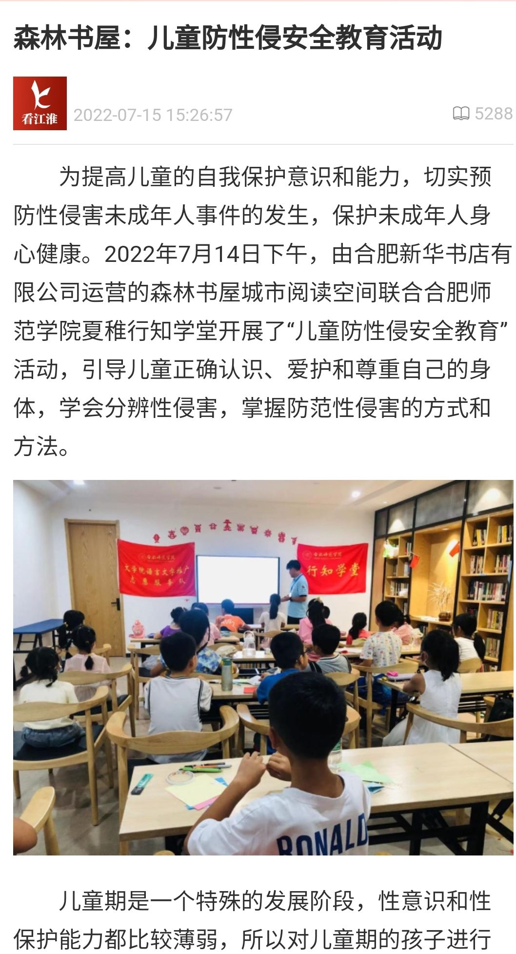 2022年7月4日下午,合肥市经开区森林树屋联合365英国上市公司官网夏稚行知学堂开展“儿童防性侵害安全教育”活动,引导儿童正确认识、爱护和尊重自己的身体,学会分辨性侵害的类型,掌握防范性侵害的方式和方法。