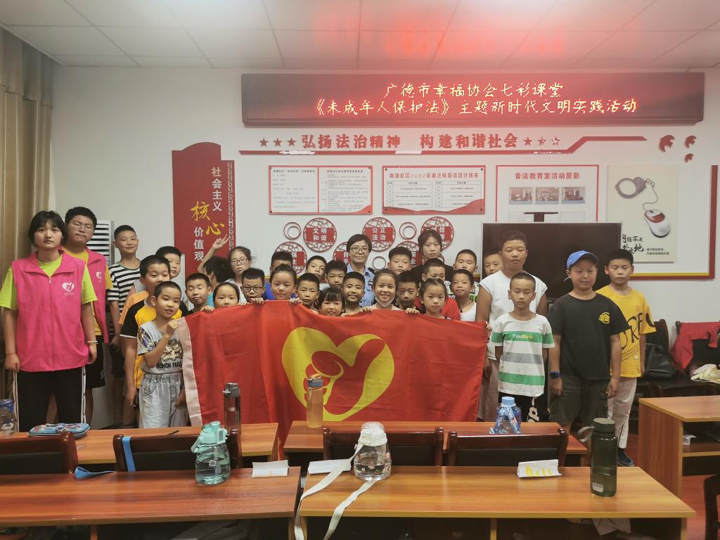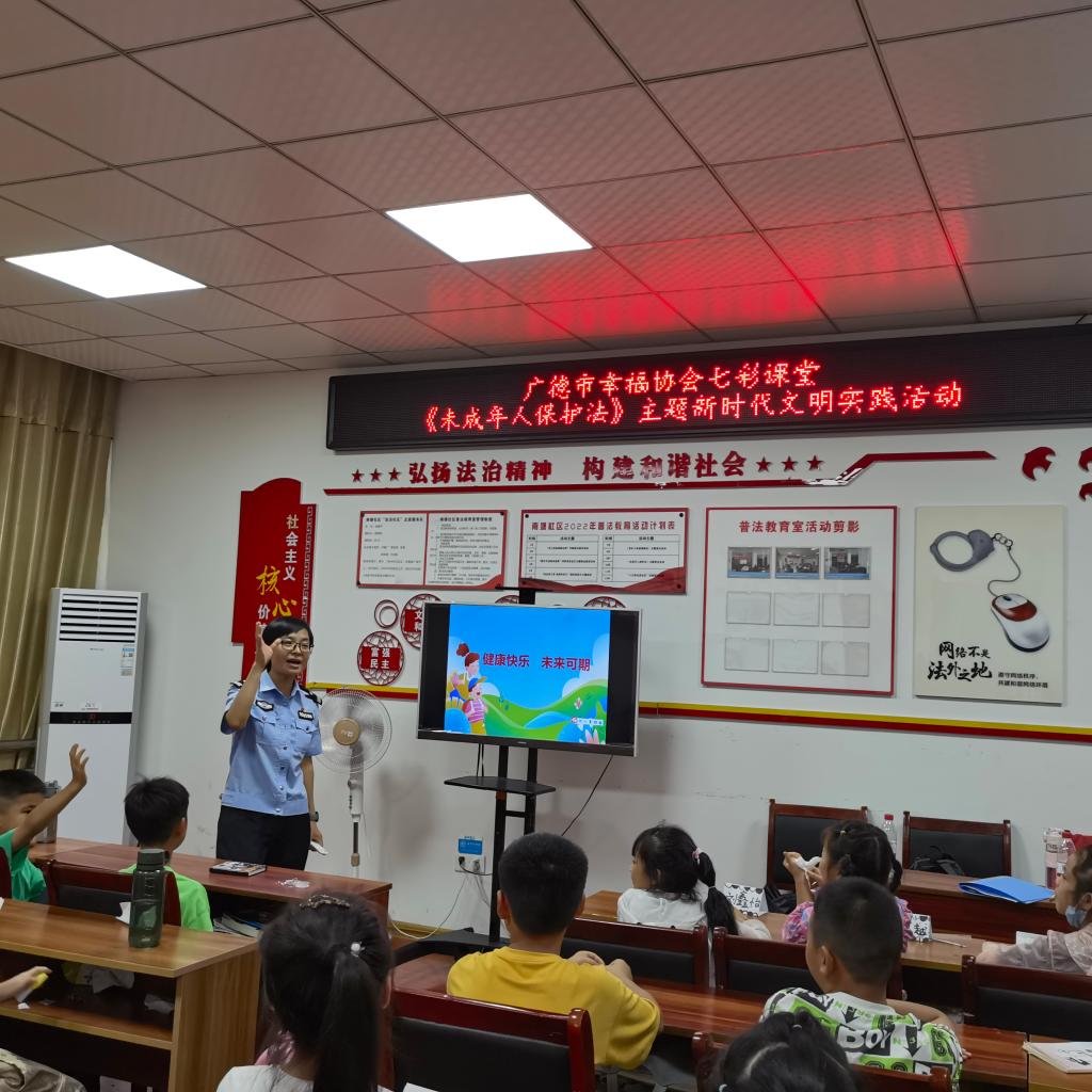 为进一步增强未成年人法治观念,提高未成年人自我保护意识,2022年7月15日在365英国上市公司官网“七彩行知学堂”(南塘社区)展开《未成年人保护法》主题教育活动。出席此次活动的有广德市公安局陈丽娟警官、广德幸福协会的志愿者以及32位学生。
