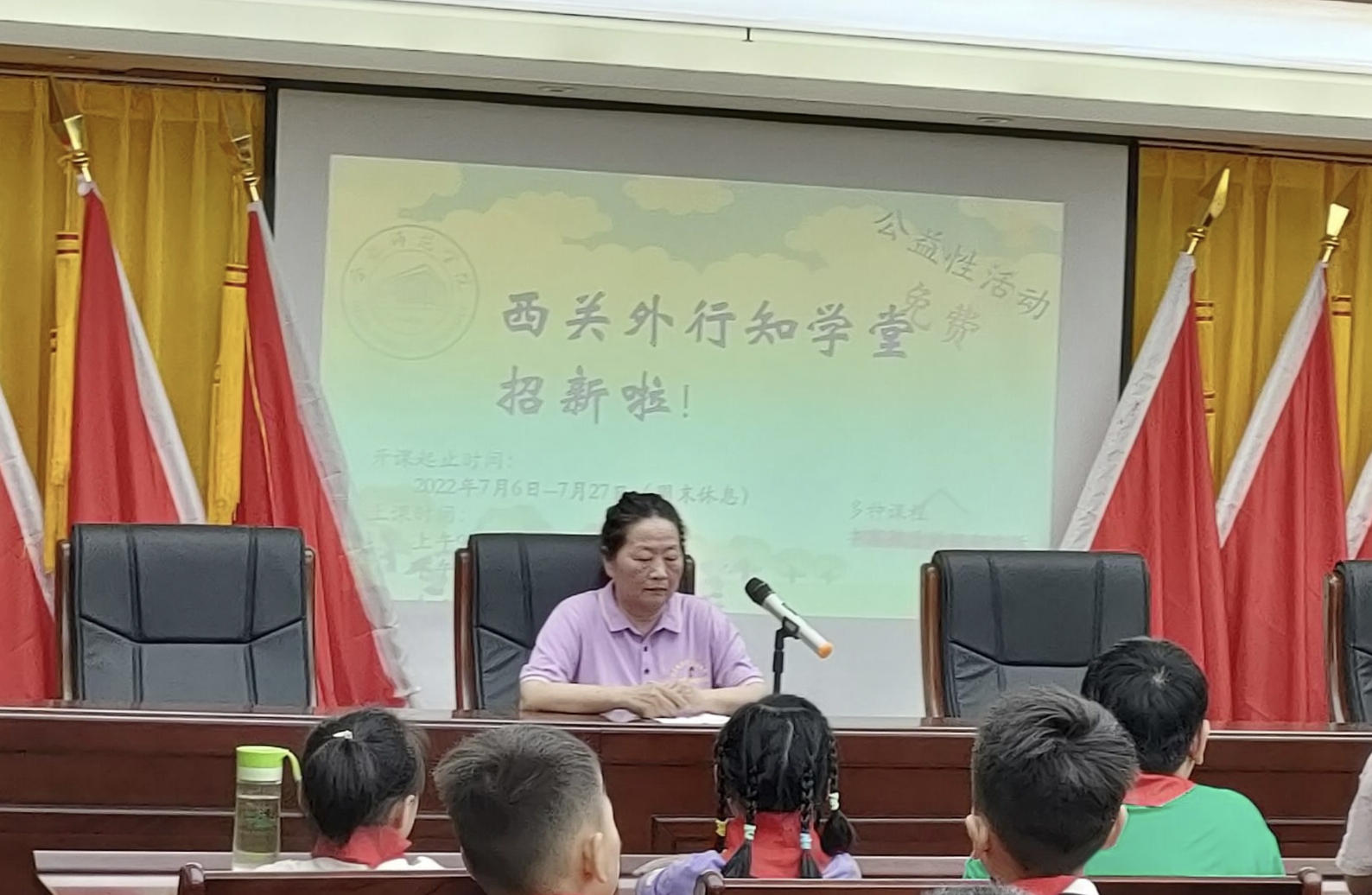 开班仪式上,首先由西关外社区韩书记致欢迎辞,向大家介绍了行知学堂中的“行知”二字的由来以及行知学堂蕴含的精神。通过韩书记简短的话语,家长和学生对西关外行知学堂有了初步了解。