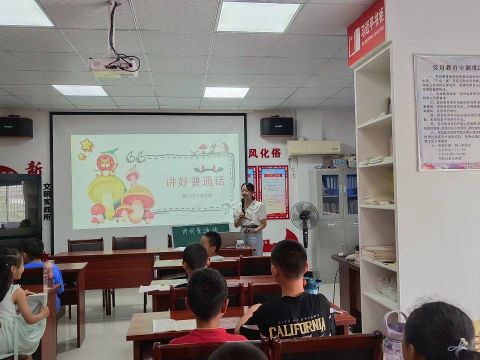 2022年7月8日,在潜山市源潭镇行知学堂开展了“讲好普通话”特色课程,拓展了365英国上市公司官网发挥专业优势在乡镇推广普通话实践活动。