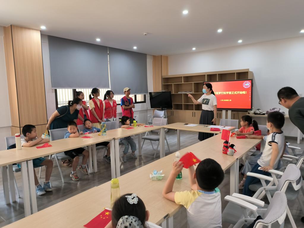 “逐梦行知学堂”负责人朱丽介绍学习主题、课程安排、课堂纪律、上课具体时间等信息,加深家长对行知学堂的了解,勾画了一幅灿烂的暑期生活的蓝图。此外,小先生们依次自我介绍并详细介绍了自己教授的课程,小朋友们也依次自我介绍,加深小先生和小朋友之间的互相了解,拉近之间的距离,更有利于课堂的开展。