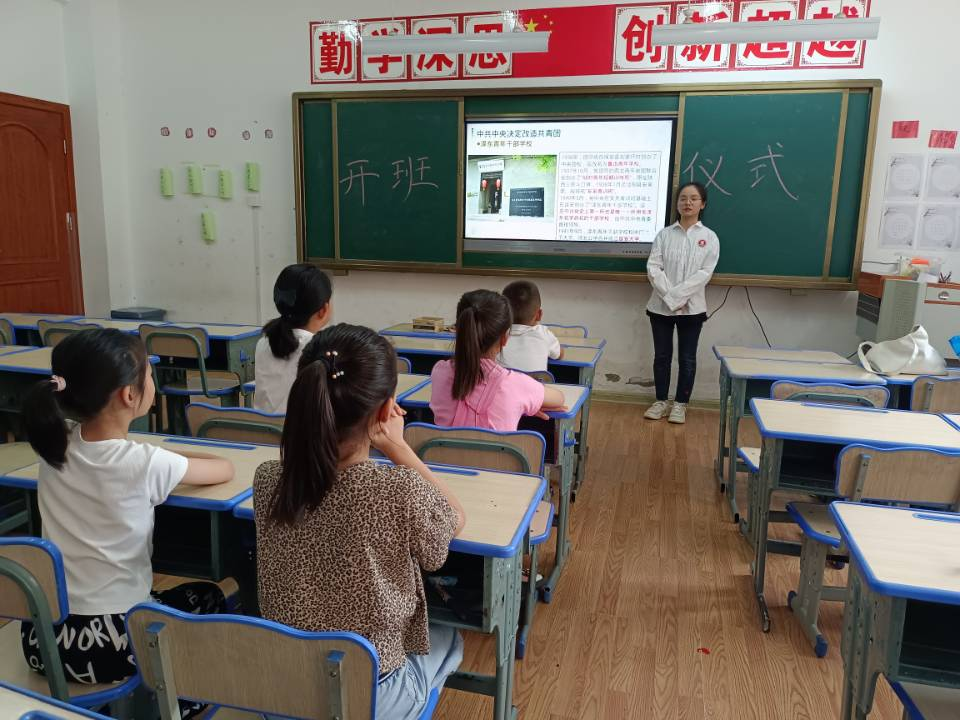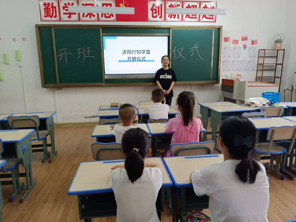7月4号上午,365英国上市公司官网阜阳市“沐阳行知学堂”在颍州区上城国际小学一年级一班顺利举办开班仪式。学校负责人、“行知学堂”全体小先生、全体小学员以及家长代表共同参加了开班仪式。