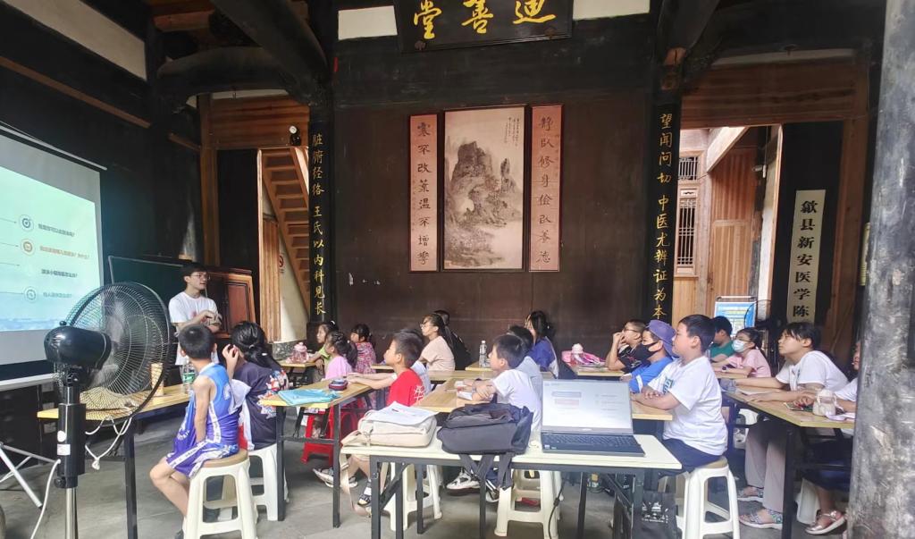 7月3日,梧桐行知学堂暑期公益课程开班式于歙县斗山社区成功举办。本次开班式有八位小学生、四十余位学生及家长参加。