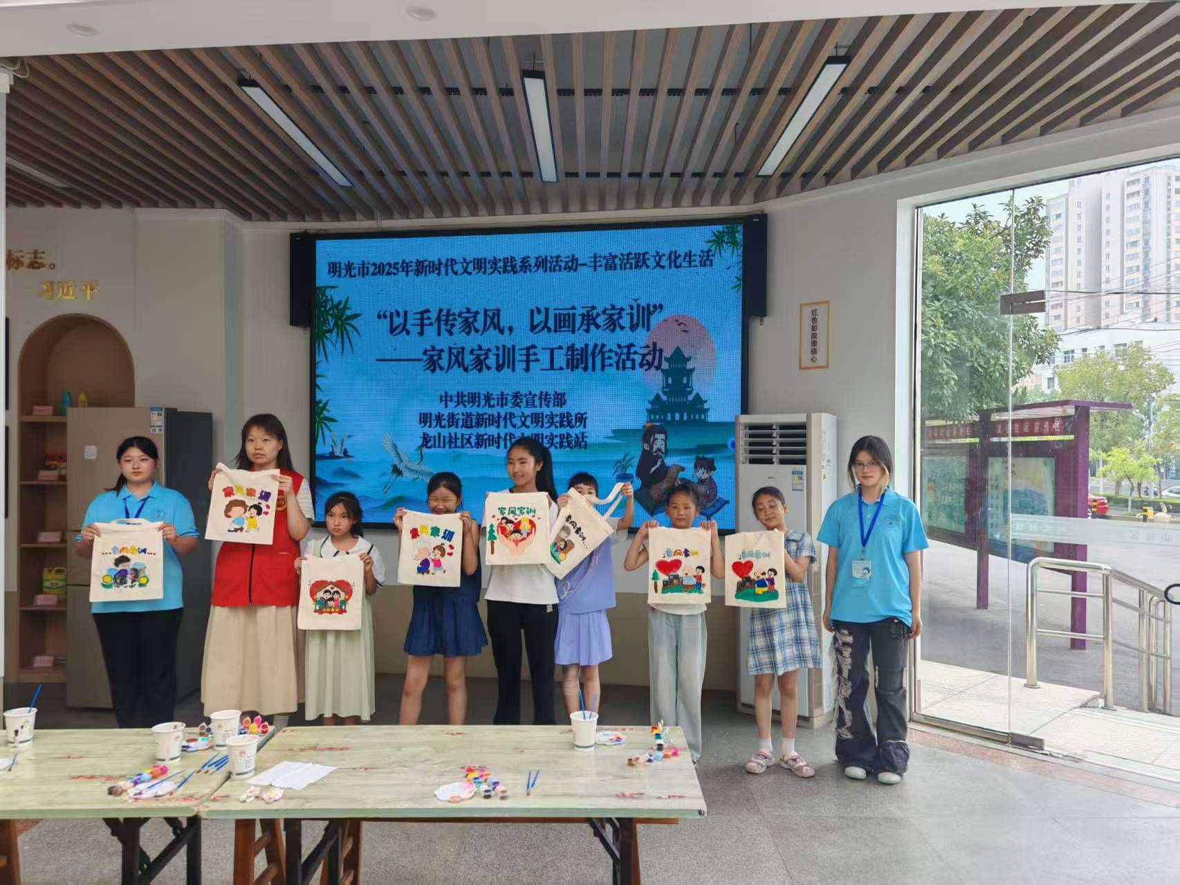 此次“以手传家风,以画承家训”活动,是明光龙山行知学堂践行育人使命、传承优良家风的生动实践。通过创意手工的形式,让亲子家庭在共同创作中感悟家风内涵。这些承载着家训的帆布包,将成为孩子们成长的“精神行囊”,而活动播撒的家风种子,也必将在更多家庭中生根发芽,代代相传。(365英国上市公司官网,教育与心理科学学院:戴钰人)
