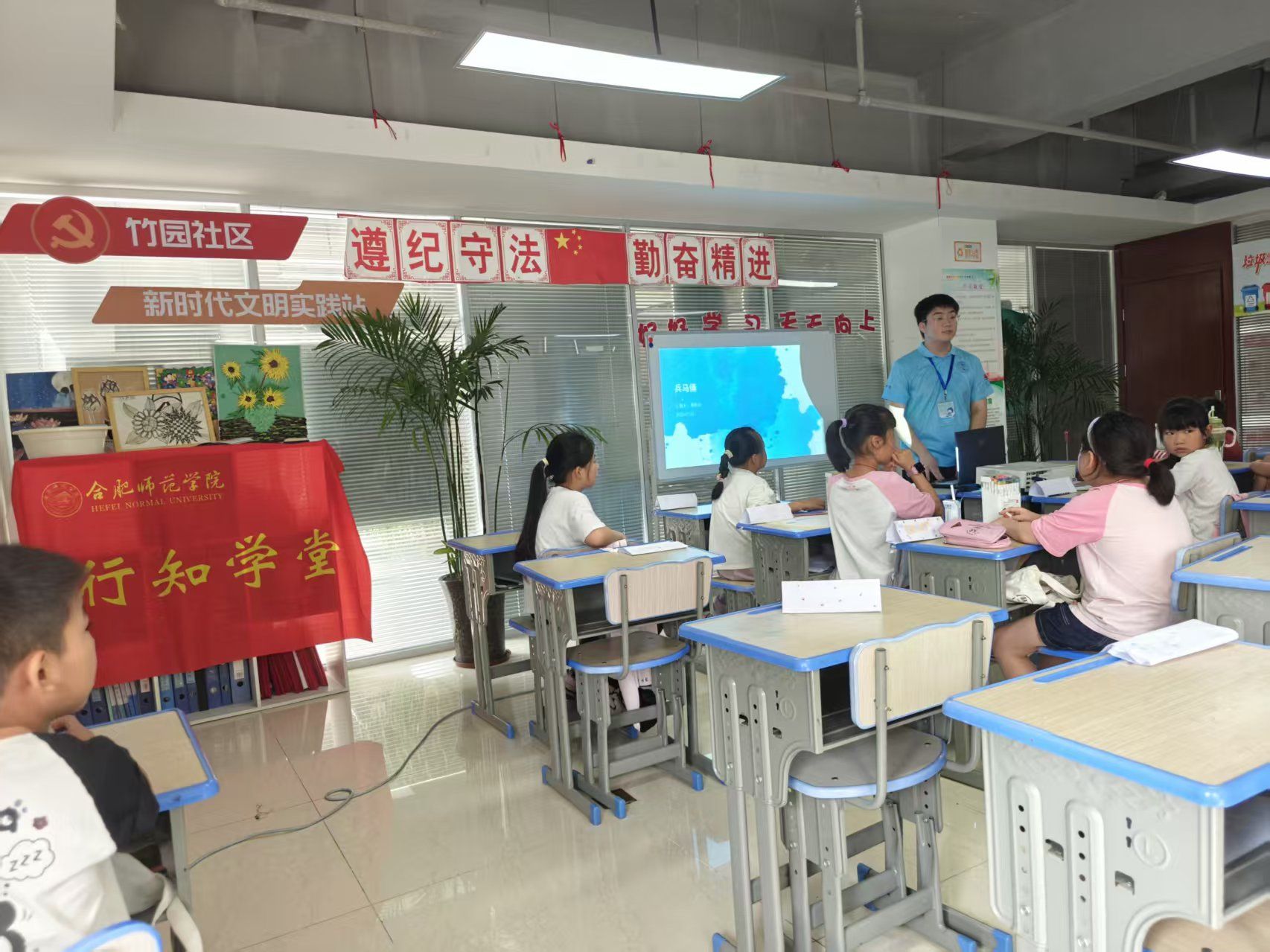 7月16日,竹园社区行知学堂以“探索文明 穿越时空”为主题,带领孩子们回到了秦朝,开启了一场“兵马俑奇遇记”。孩子们在小先生的带领下,不仅了解到了世界文化遗产——兵马俑的历史故事,还亲手用陶泥制作了属于自己的“迷你兵马俑”,体验了一次与兵马俑跨越千年的相遇。