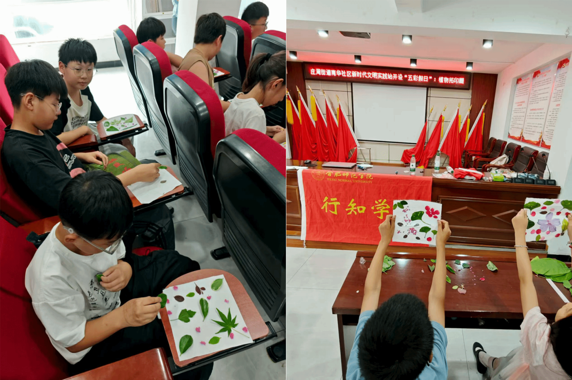 这节看似简单的植物拓染课,其意义远不止于完成一件手工作品。它是南华社区“行知学堂”践行陶行知先生“生活即教育”“社会即学校”“教学做合一”教育理念的生动缩影。在“小先生制”的独特模式下,“小先生”在服务社区、引导孩童的过程中,自身也得到了极大的锻炼和成长,实现了知识的输出、责任感的培养和领导力的提升,这本身就是“行知合一”的双向奔赴。也为孩子们打开了一扇感知自然与艺术的神奇之门。