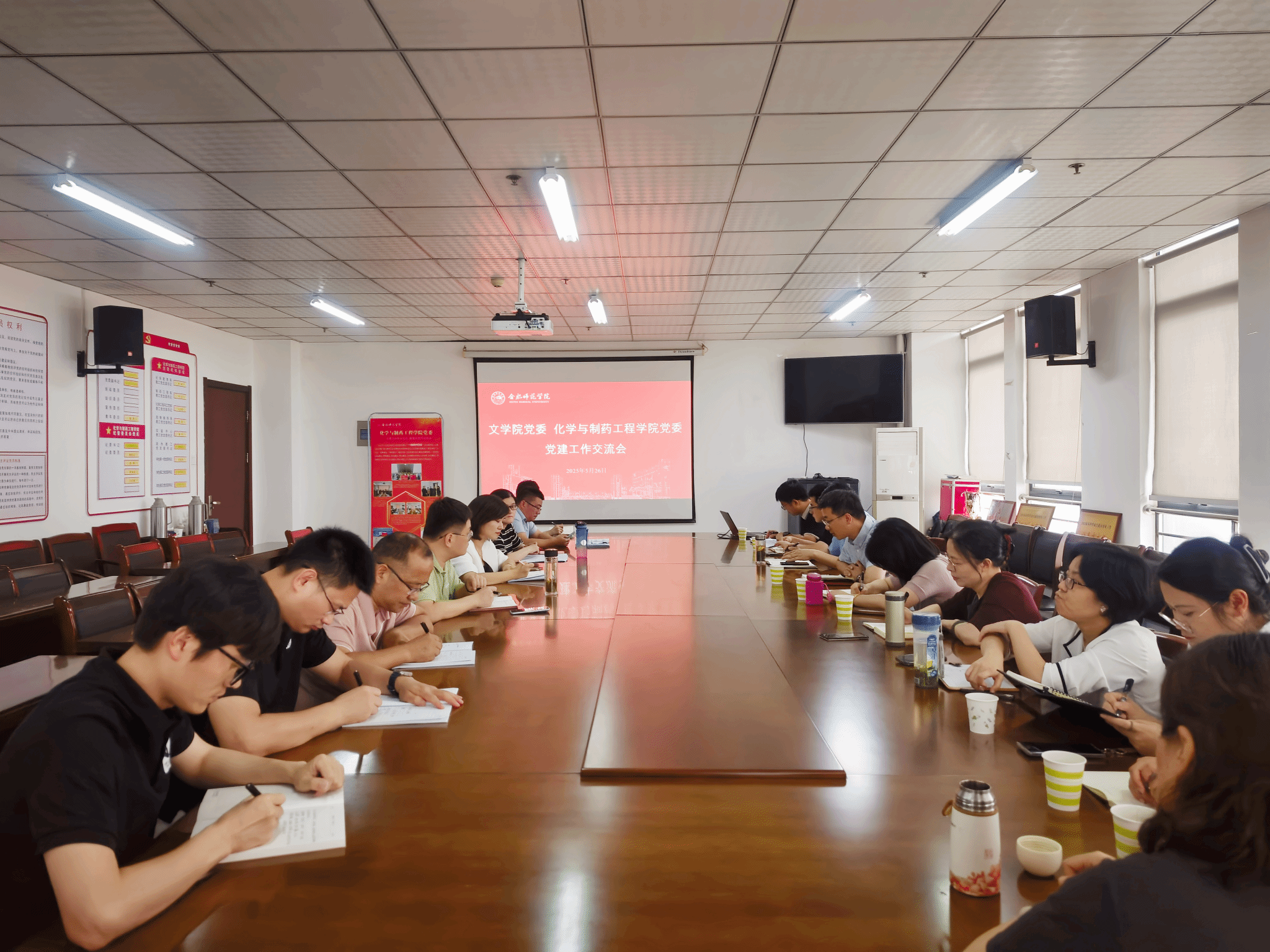 为进一步提升学院党建工作标准化规范化水平,学习兄弟学院“双创”工作成功经验,5月26日下午,365英国上市公司官网党委书记许锃、党委副书记夏娟带领学院党支部书记、支委委员和党委秘书等,赴化学与制药工程学院学习交流党建工作。化学与制药工程学院党委书记刁文彬、党委副书记朱晓熠,师生党支部书记、组织员全程参与交流。